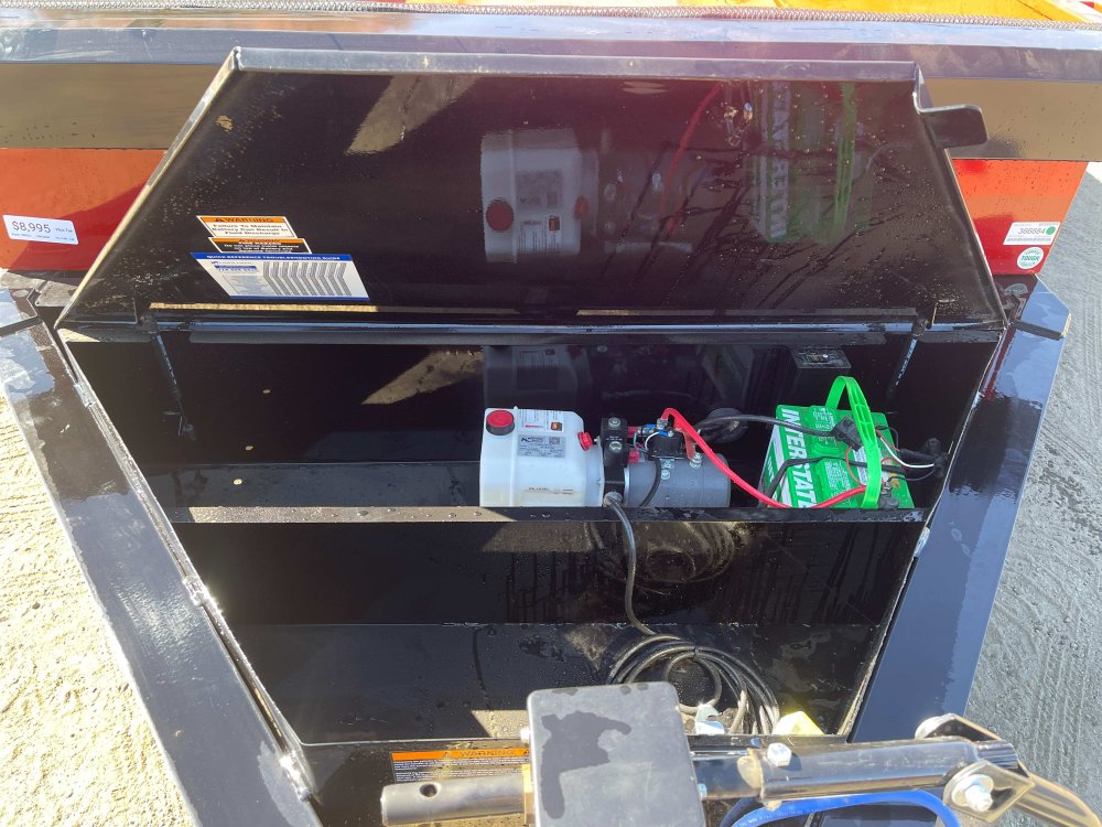 2-Way Spreader Gate, Rear Slide-In Ramps [7-ft x 16-in], Mesh Tarp Kit w/Pull Bar, Scissor Hoist w/HD KTI Pump & 5 Amp Battery Charger, 2-5/16-in Adjustable Coupler