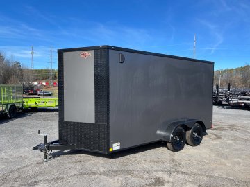 New 2026 Diamond Cargo 7ft x 14ft 7k Tandem Axle Bumper Pull Enclosed w/7ft walls & Ramp Door w/Spring Assist (Charcoal w/BO) High Quality Trailer Charcoal w/BO (84 in wall height) 2 - 3500-Lb Dexter Standard Spring Suspension w/EZ Lube Drop Axle(s) (6PR Tires) Electric Forward Self-Adjusting Brakes on 2 Axles Steel Frame / Aluminum Skin Construction w/16-in Crossmembers (3/4-in Plywood Floor) 1 - A-Frame Drop Leg 5000 lb Jack Black Aluminum Diamond Plate Fenders LED Exterior Lighting Pkg (w/Cold Weather Harness) Ramp Door w/Spring Assist Upgraded R/H RV Entry Door Super Premium .080 Polycore Skin 4-D-Rings (Removable) 2-5/16-in A-Frame Cast Coupler No haggle, no BS, no hidden fees, no nickel and diming. Call 770-608-6882, or visit www.georgiatraileroutlet.com Georgia Trailer Outlet 45 Carson Loop NW Cartersville, GA 30121 Contact us for warranty information.