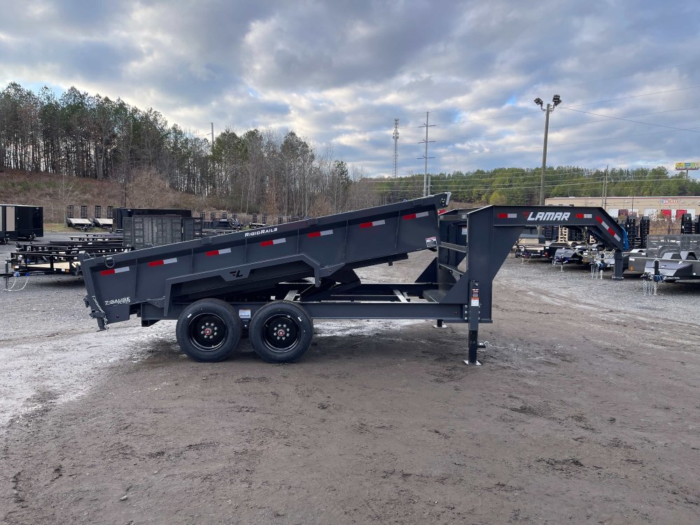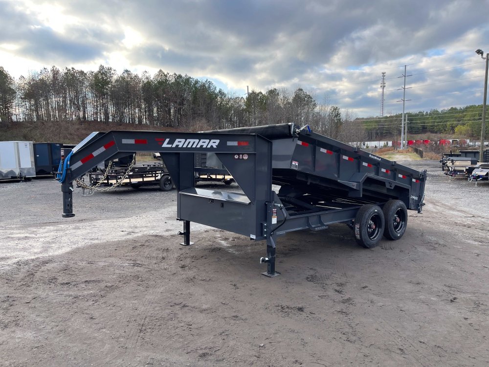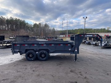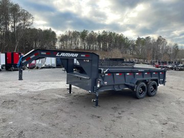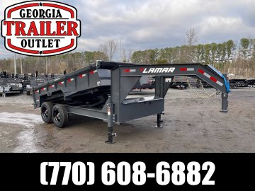 New 2026 Lamar 7ft x 14ft 16k Tandem Axle Gooseneck Dump w/2ft walls & 2-Way Spreader Gate (Lamar Gray) High Quality Trailer Lamar Gray (w/ Primer) 2 - 8000-Lb Dexter Standard Spring Suspension w/EZ Lube Axle(s) (16PR Tires) Electric Forward Self-Adjusting Brakes on 2 Axles Steel Construction w/12 Crossmembers (7-ga Steel Floor) 2 - Spring Loaded Drop Leg 10000 lb (1-Speed) Jacks Steel Smooth Fenders (Weld-On) LED Exterior Lighting Pkg (w/Cold Weather Harness) 2-Way Spreader Gate Rear Slide-In Ramps [7-ft x 16-in] Mesh Tarp Kit w/Pull Bar Scissor Hoist w/HD KTI Pump & 5 Amp Battery Charger 2-5/16 25k Gooseneck Coupler No haggle, no BS, no hidden fees, no nickel and diming. Call 770-608-6882, or visit www.georgiatraileroutlet.com Georgia Trailer Outlet 45 Carson Loop NW Cartersville, GA 30121 Contact us for warranty information.