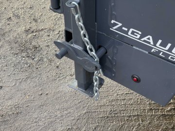 2-Way Spreader Gate, Rear Slide-In Ramps [7-ft x 16-in], Mesh Tarp Kit w/Pull Bar, Scissor Hoist w/HD KTI Pump & 5 Amp Battery Charger, 2-5/16 25k Gooseneck Coupler