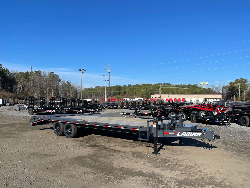 New 2026 Lamar 8.5ft x 24ft 14k Tandem Axle Bumper Pull Flatbed & XL Rhino Ramps [5-ft x 42-in] (Lamar Gray) High Quality Trailer Lamar Gray (w/ Primer) 2 - 7000-Lb Dexter Standard Spring Suspension w/EZ Lube Axle(s) (10PR Tires) Electric Forward Self-Adjusting Brakes on 2 Axles Steel Construction w/16-in Crossmembers (2-in PT Wood Floor) 2 - Spring Loaded Drop Leg 10000 lb (1-Speed) Jacks Deck Over the Wheels LED Exterior Lighting Pkg (w/Cold Weather Harness) XL Rhino Ramps [5-ft x 42-in] Ramp Spring Assist 1-Tool Box (Standard On Tongue) 2-in Rub Rail 2-5/16-in Adjustable Coupler No haggle, no BS, no hidden fees, no nickel and diming. Call 770-608-6882, or visit www.georgiatraileroutlet.com Georgia Trailer Outlet 45 Carson Loop NW Cartersville, GA 30121 Contact us for warranty information.