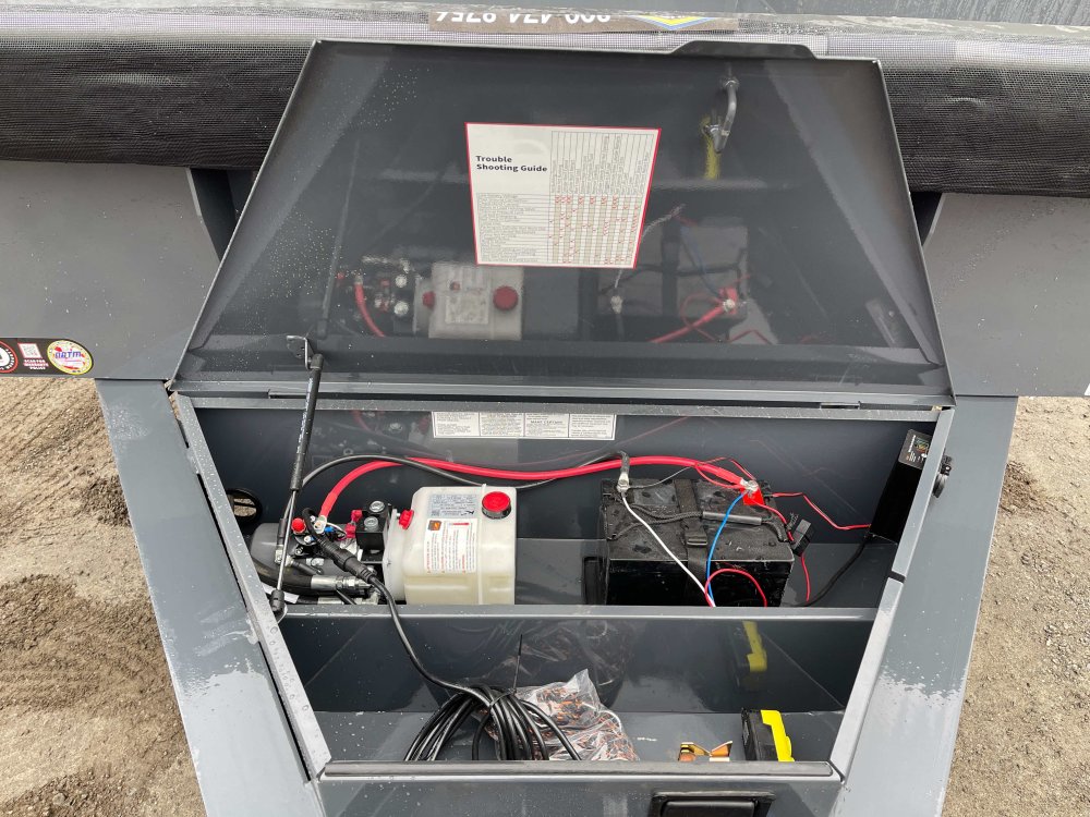 2-Way Spreader Gate, Rear Slide-In Ramps [7-ft x 16-in], Mesh Tarp Kit w/Pull Bar, Scissor Hoist w/HD KTI Pump & 5 Amp Battery Charger, 2-5/16-in Adjustable Coupler