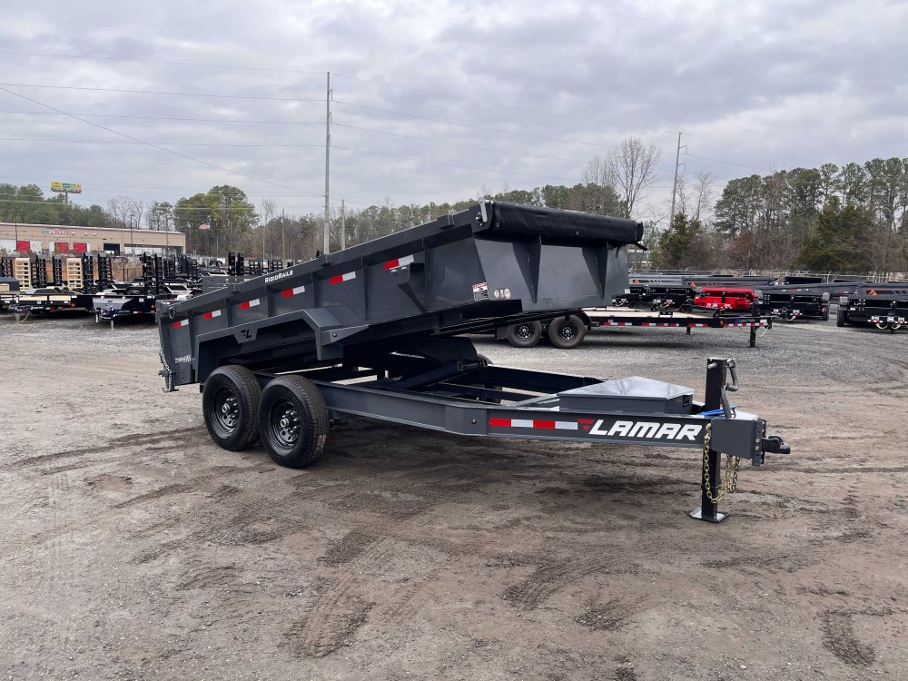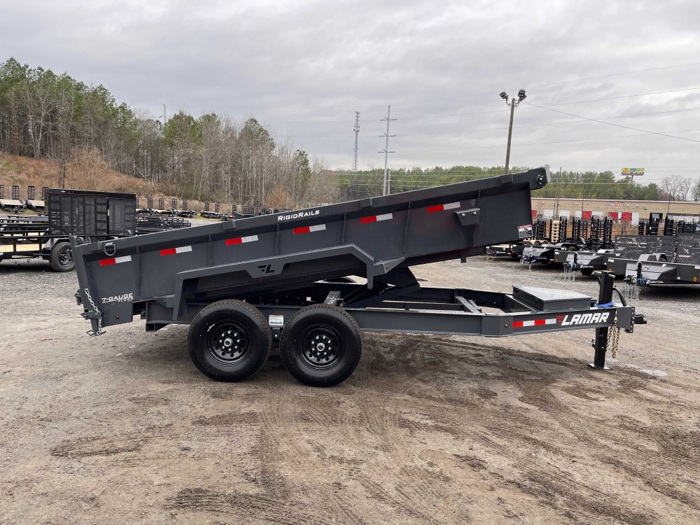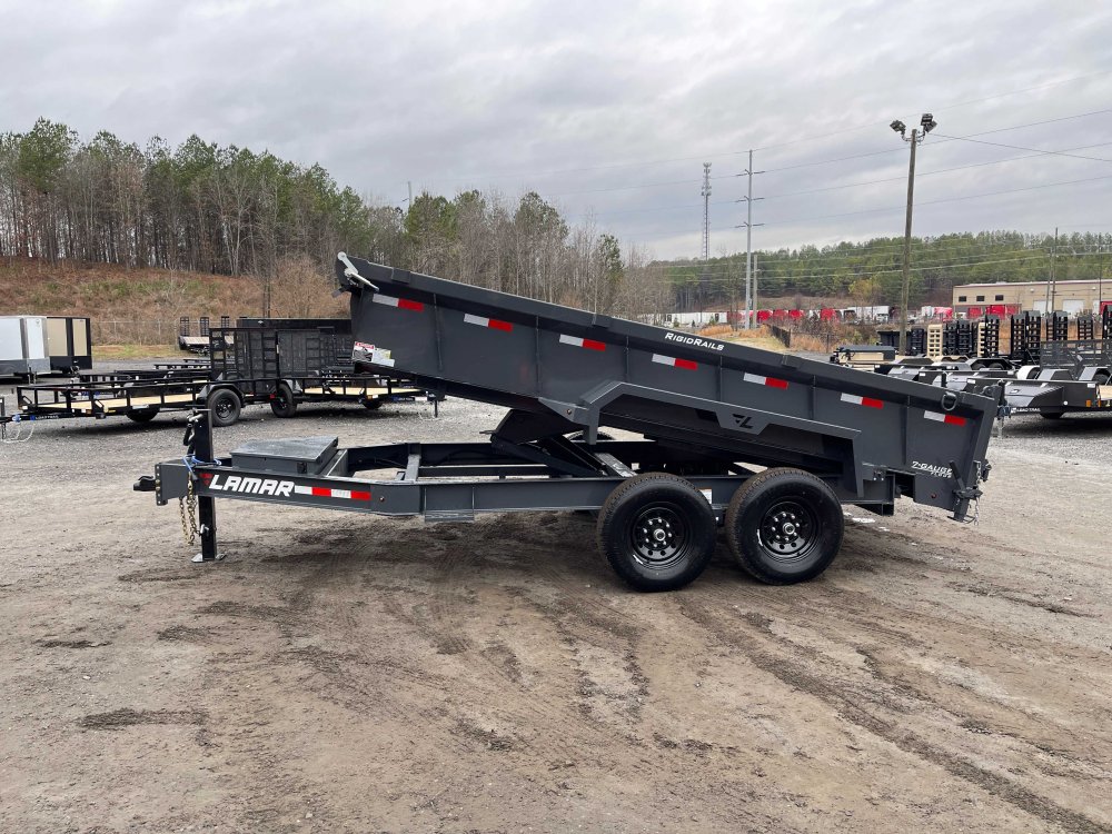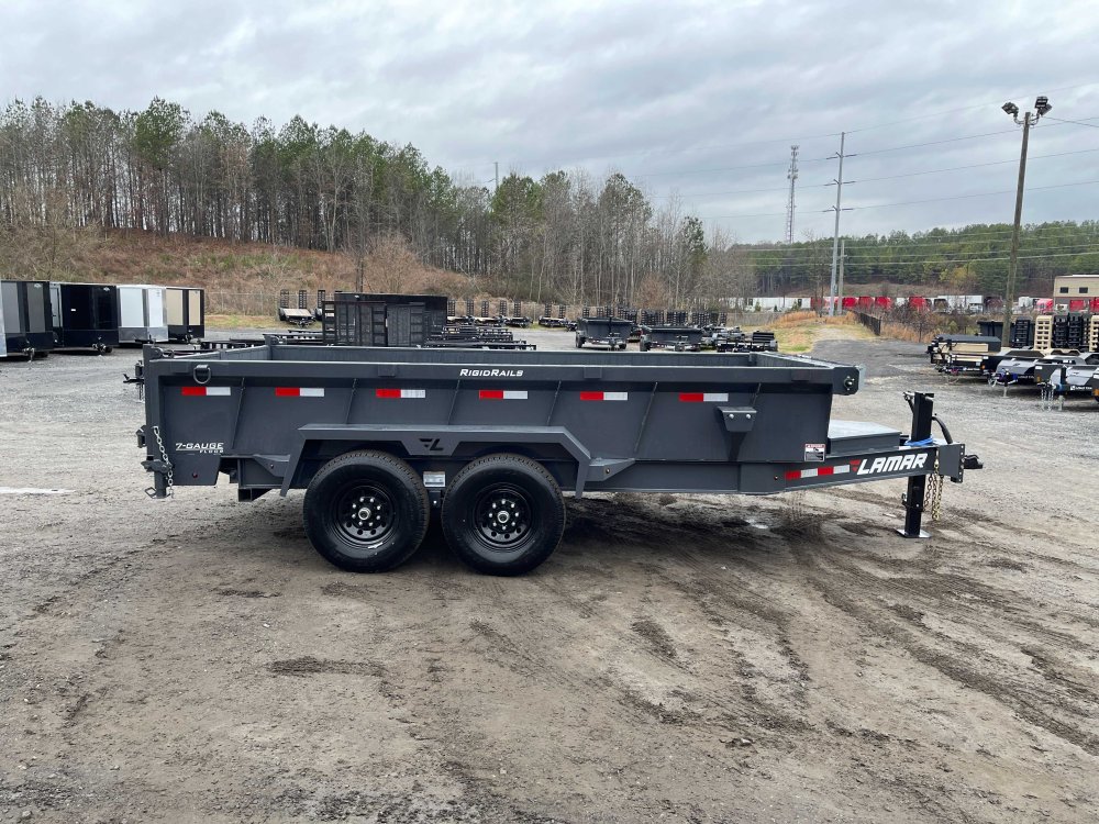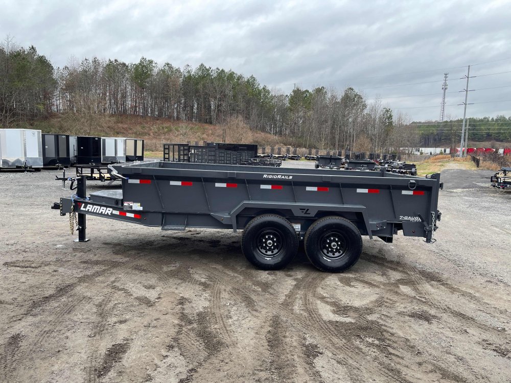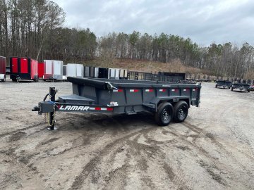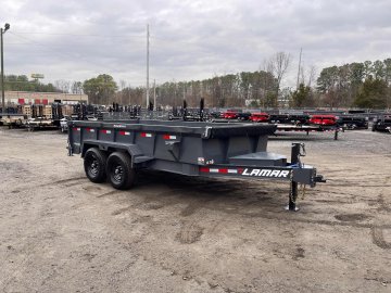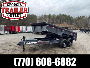 New 2026 Lamar 7ft x 14ft 14k Tandem Axle Bumper Pull Dump w/2ft walls & 2-Way Spreader Gate (Lamar Gray) High Quality Trailer Lamar Gray (w/ Primer) 2 - 7000-Lb Dexter Standard Spring Suspension w/EZ Lube Axle(s) (10PR Tires) Electric Forward Self-Adjusting Brakes on 2 Axles Steel Construction w/16-in Crossmembers (7-ga Steel Floor) 1 - Spring Loaded Drop Leg 10000 lb (1-Speed) Jack Steel Smooth Fenders (Weld-On) LED Exterior Lighting Pkg (w/Cold Weather Harness) 2-Way Spreader Gate Rear Slide-In Ramps [7-ft x 16-in] Mesh Tarp Kit w/Pull Bar Scissor Hoist w/HD KTI Pump & 5 Amp Battery Charger 2-5/16-in Adjustable Coupler No haggle, no BS, no hidden fees, no nickel and diming. Call 770-608-6882, or visit www.georgiatraileroutlet.com Georgia Trailer Outlet 45 Carson Loop NW Cartersville, GA 30121 Contact us for warranty information.