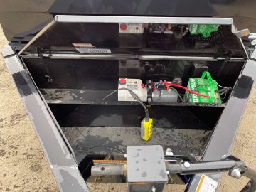 2-Way Spreader Gate, Rear Slide-In Ramps [7-ft x 16-in], Mesh Tarp Kit w/Pull Bar, Scissor Hoist w/HD KTI Pump & 5 Amp Battery Charger, 2-5/16-in Adjustable Coupler