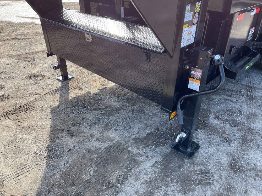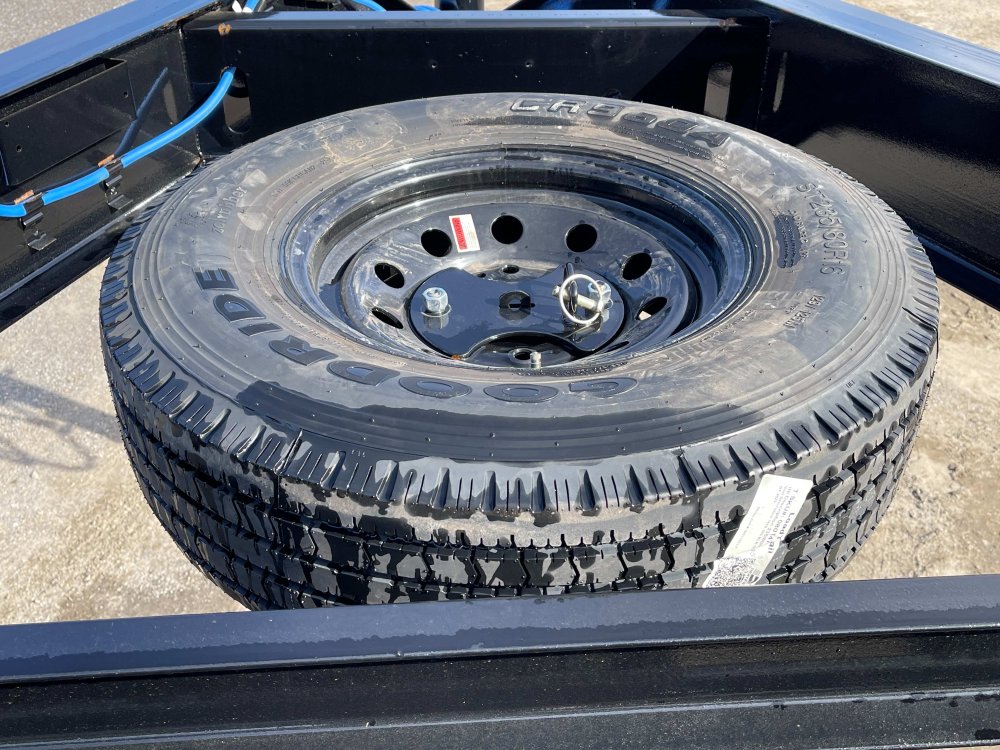 2-Way Spreader Gate, Rear Slide-In Ramps [7-ft x 16-in], Mesh Tarp Kit w/Pull Bar, Telescopic Lift w/HD KTI Pump & 5 Amp Battery Charger, 2-5/16 25k Gooseneck Coupler