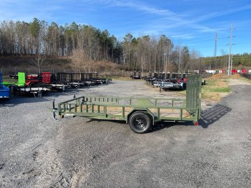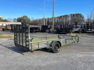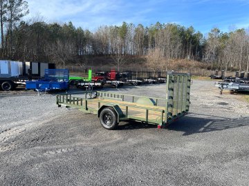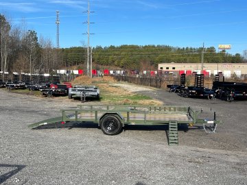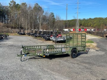 New 2026 Load Trail 7ft x 14ft 3.5k Single Axle Bumper Pull Utility w/1ft walls & Mesh Ramp Gate [4-ft] (Army Green) High Quality Trailer Army Green (w/ Primer) 1 - 3500-Lb Standard Spring Suspension w/EZ Lube Axle(s) (6PR Tires) Idler Axle(s) W/O Brakes Steel Construction w/24-in Crossmembers (2-in PT Wood Floor) 1 - A-Frame 2000 lb Jack Steel Diamond Plate Fenders (Weld-On) LED Exterior Lighting Pkg (w/Cold Weather Harness) Mesh Ramp Gate [4-ft] Ramp Spring Assist 1-Spare Tire Mount (No Spare) 4-Corner Tie Downs 2-in A-Frame Cast Coupler No haggle, no BS, no hidden fees, no nickel and diming. Call 770-608-6882, or visit www.georgiatraileroutlet.com Georgia Trailer Outlet 45 Carson Loop NW Cartersville, GA 30121 Contact us for warranty information.