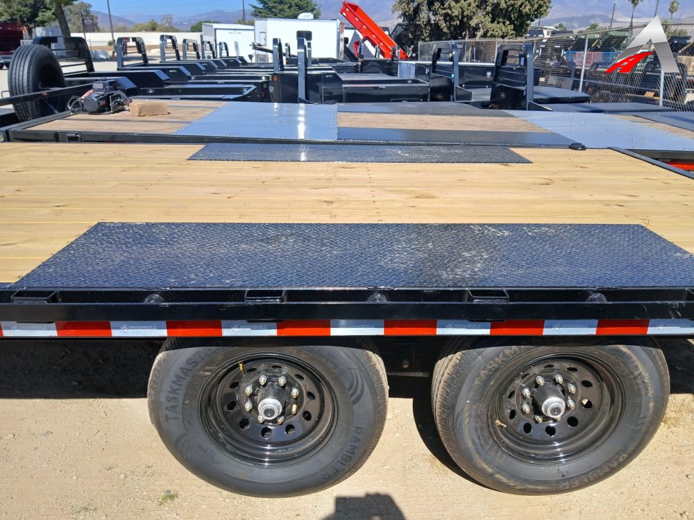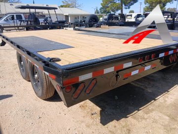 ES2 -2 -7,000 Lb Axles Straight (2 Elec. Brakes ) 000 - 10" I-Beam Frame 000 - 16" Crossmembers (3" 3.5lb C-channel) 000 - 102" Straight Deck / With 8' Slide In Ramps 000 - Jack Spring Loaded Drop Leg 1-10K 000 - Chain Storage Tray 000 - Bumper Pull Adj 14k Coupler 2 5/16 000 - Floor Treated Wood 000 - Standard Wire Harness & Lights 000 - D-Rings 3" x 5/8" Weld On (4ech) Std. 000 - ST235/80 R16 LRE 10 Ply. 000 - Spare Tire Mt. BLK - Black"