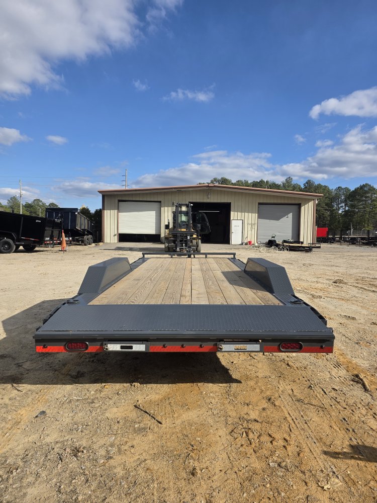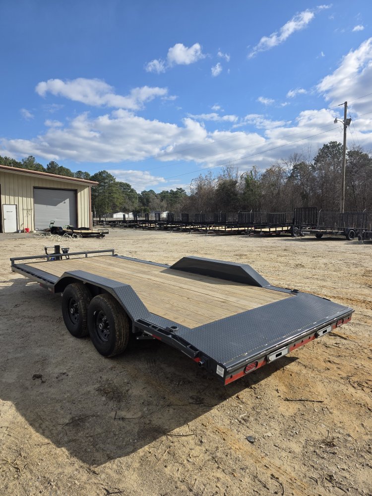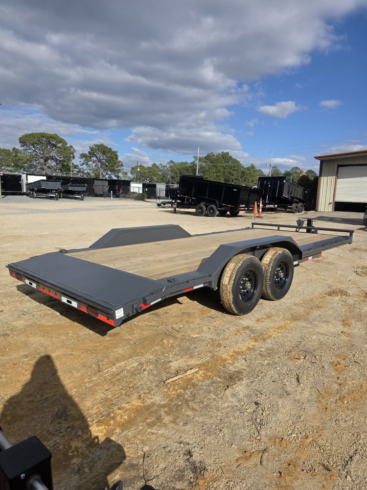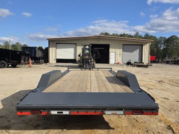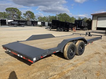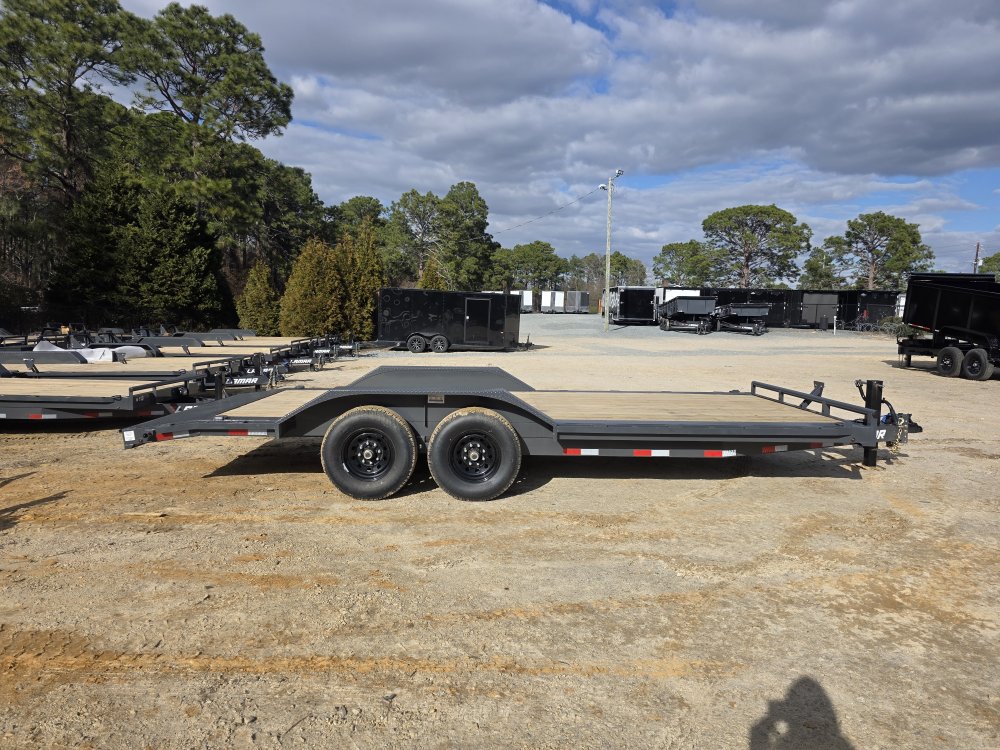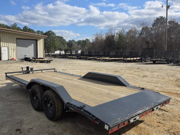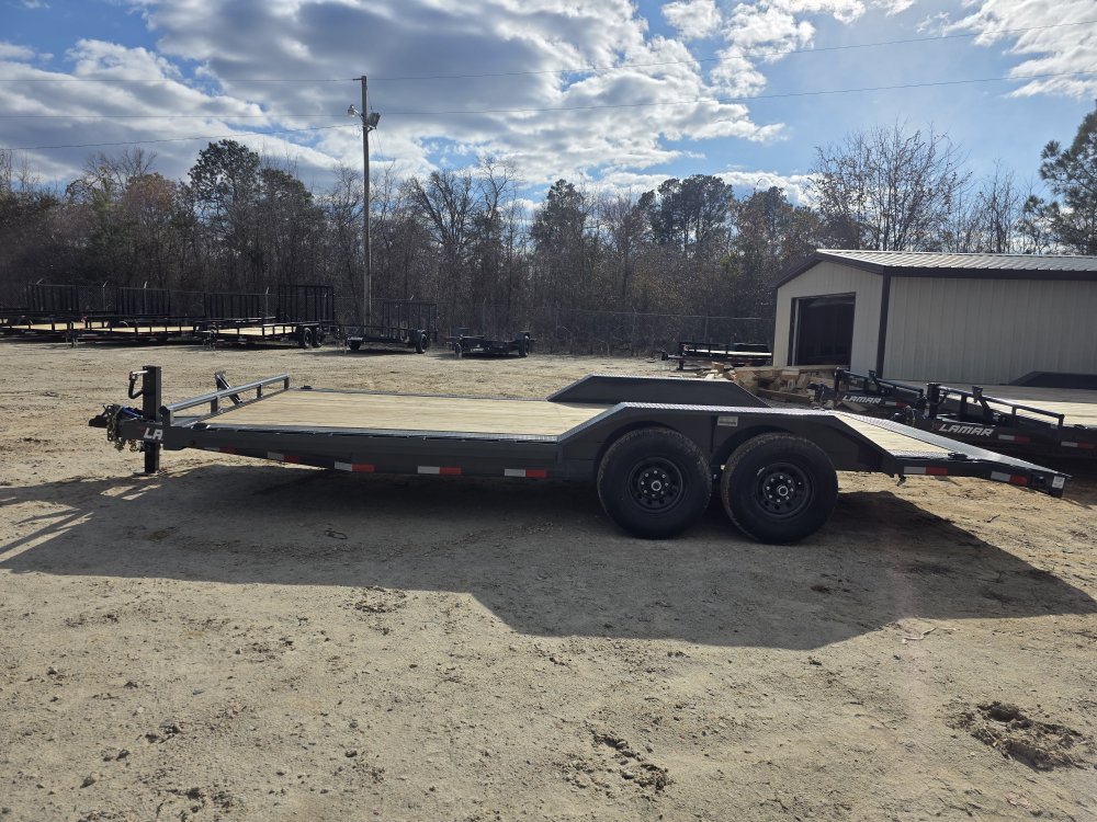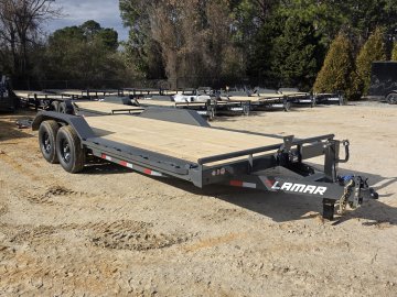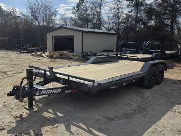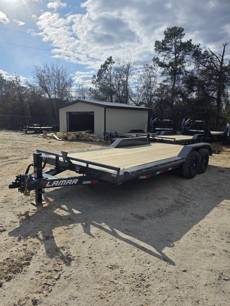 The Lamar Trailer model H602207 is a heavy-duty equipment hauler built for towing substantial loads with reliability and ease. This bumper-pull trailer measures 102” wide by 20’ long and is typically rated at a 14,000 lb GVWR, giving it a strong payload capacity for construction equipment, tractors, vehicles, and other large machinery. It rides on tandem 7,000 lb EZ-Lube axles with electric brakes and comes with robust features like a 6’ channel steel frame with 16”-on-center crossmembers, treated yellow pine deck, driveover fenders, and rub rail with stake pockets for secure tie-downs. Standard towing components include a 2 5/16” adjustable coupler, single 10,000 lb drop-leg jack, and LED lighting with a weather resistant harness, while loading is made easier with slide-in ramps–all finished in Lamar’s durable power-coat for corrosion resistance, making it a dependable choice for heavy hauling tasks.
