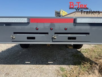 Drive over fenders 102" wide Front tool box Drop leg jack Tandem 7k axles Rear stabilizer jacks Slide in ramps #145328