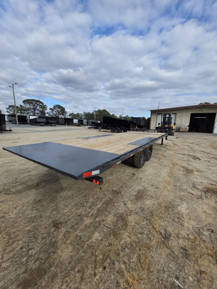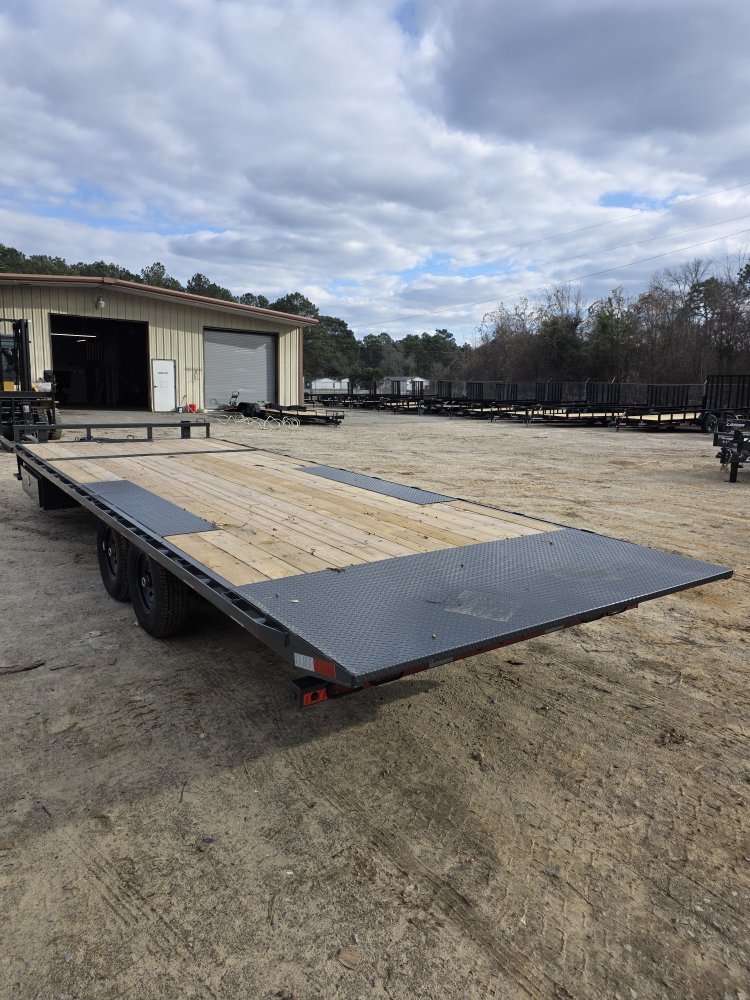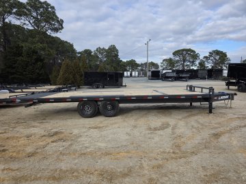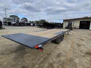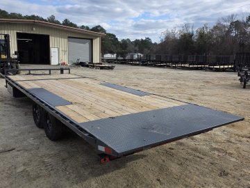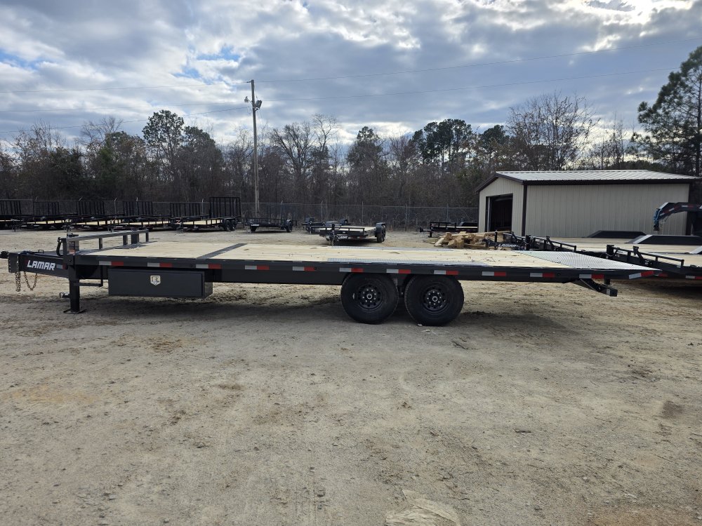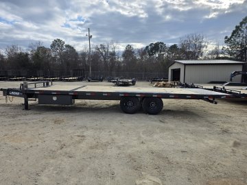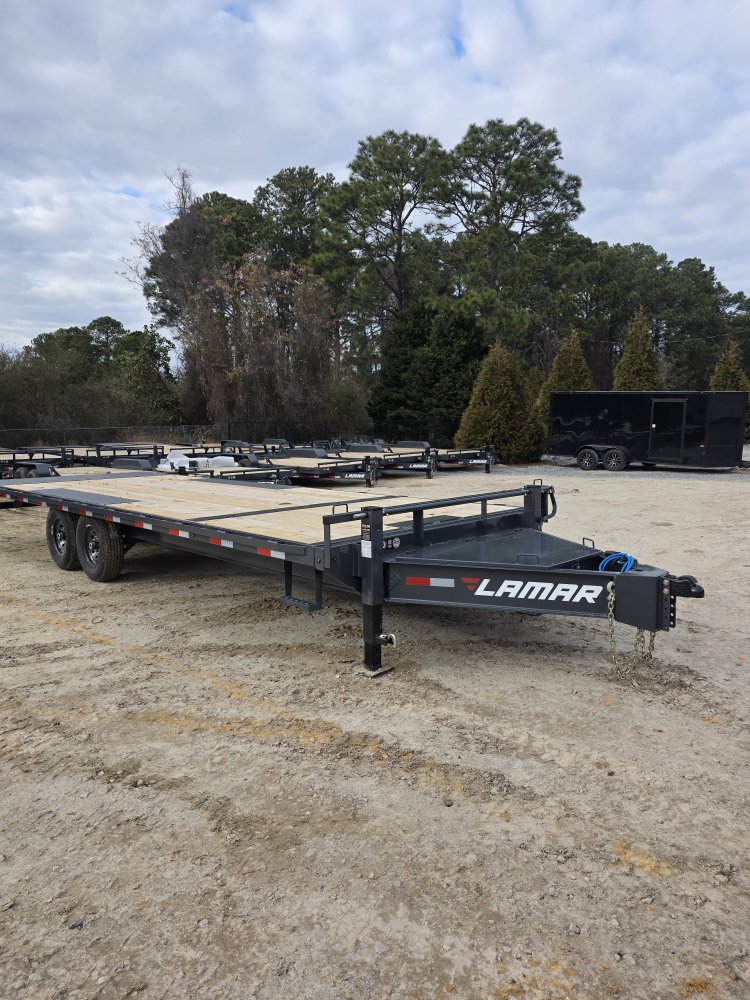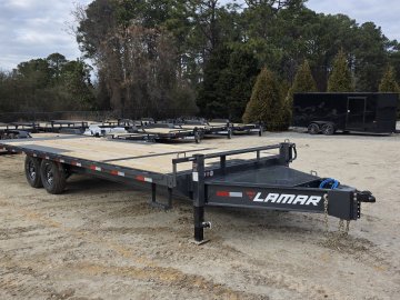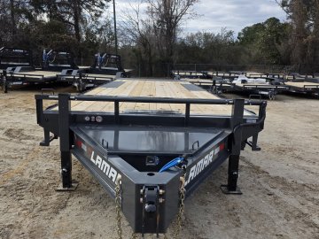 The Lamar FA022437 is a heavy-duty workhorse designed for those who need serious hauling capacity without the hassle of ramps. It’s a 24-foot deckover tilt trailer, which means you get a full 102-inch wide deck that sits above the wheels, giving you plenty of room for wide equipment like tractors, skid steers, or scissor lifts. This specific model is built for heavy loads, boasting a 14,000 lb GVWR riding on triple 7,000 lb axles. Its standout feature is the hydraulic power tilt system—you can raise and lower the entire deck with the push of a button, making loading and unloading incredibly fast and safe. Built on a rugged I-beam frame with a durable charcoal powder coat finish, it typically comes equipped with dual jacks and ample toolbox storage, making it a reliable, efficient choice for commercial contractors.