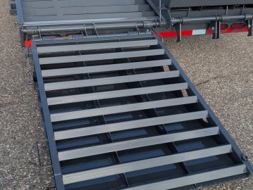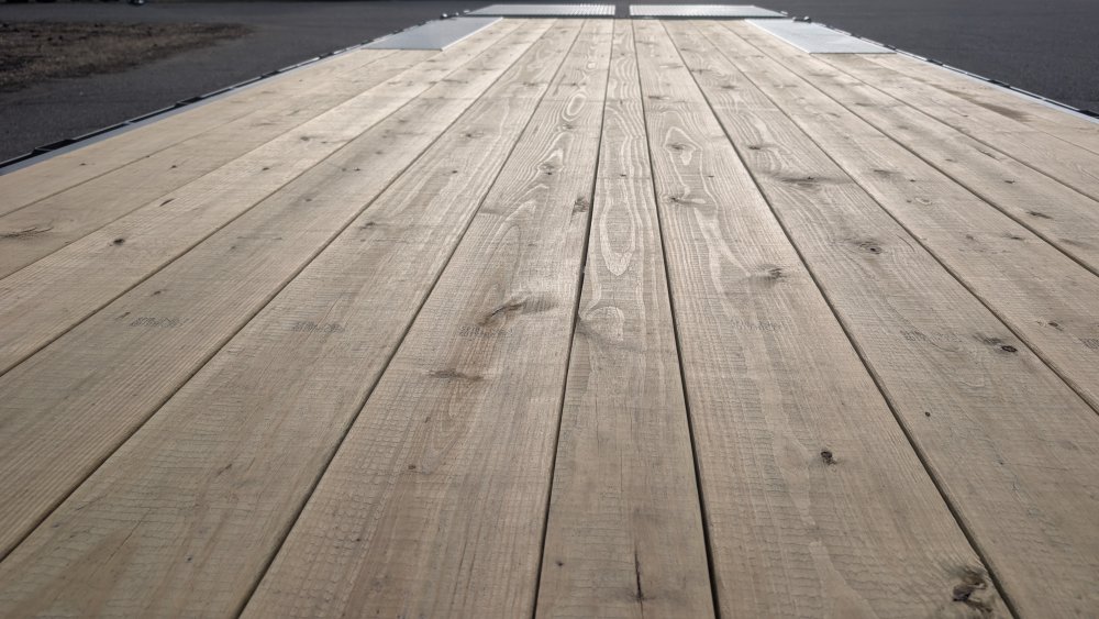 This trailer is packed with premium features, including a heavy-duty 2-5/16" 21K Demco adjustable cast coupler, dual 10K drop-leg jacks for maximum stability, and a front toolbox for convenient storage. The treated yellow pine floor is surrounded by a full rub rail, standard stake pockets, and four weld-on D-rings, providing endless tie-down flexibility. Finished in a durable Lamar Gray powder coat and equipped with a full LED package, this F8 deckover is built to work and last.