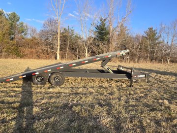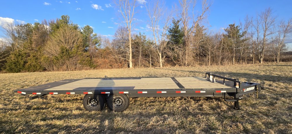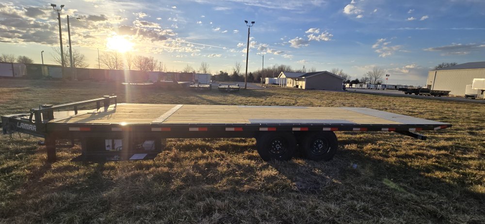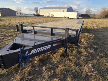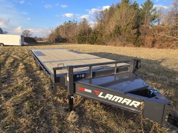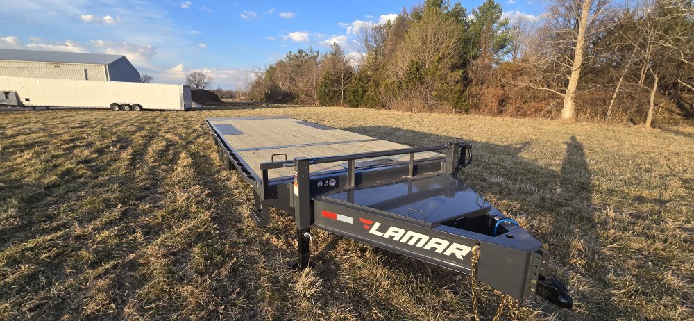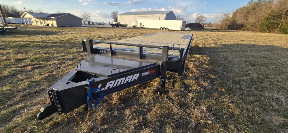 The Lamar FA022427 is a heavy-duty workhorse designed for those who need serious hauling capacity without the hassle of ramps. It’s a 24-foot deckover tilt trailer, which means you get a full 102-inch wide deck that sits above the wheels, giving you plenty of room for wide equipment. This specific model is built for heavy loads, boasting a 14000 lb GVWR riding on dual 7,000 lb axles. Its standout feature is the hydraulic power tilt system—you can raise and lower the entire deck with the push of a button, making loading and unloading incredibly fast and safe. Built on a rugged I-beam frame with a durable charcoal powder coat finish, it typically comes equipped with dual jacks and ample toolbox storage, making it a reliable, efficient choice for commercial contractors.