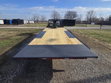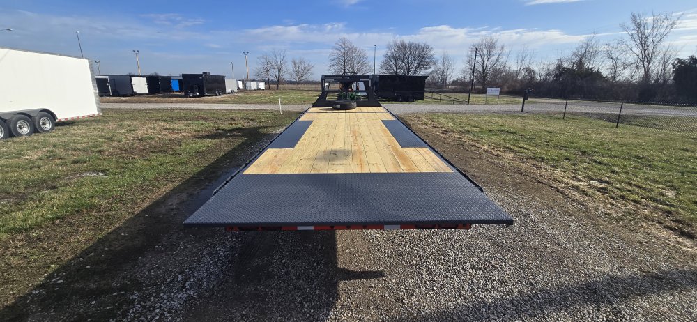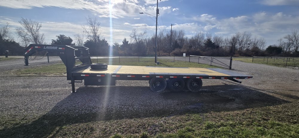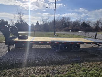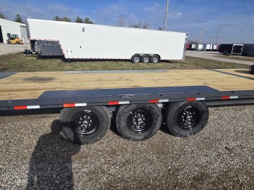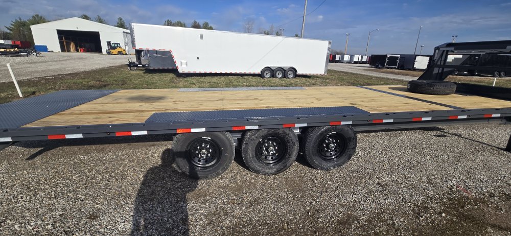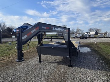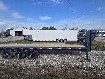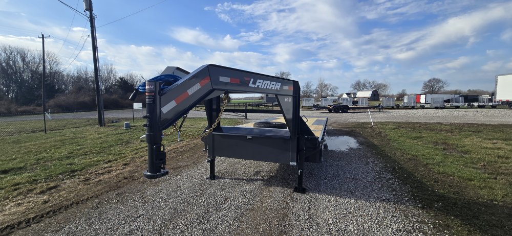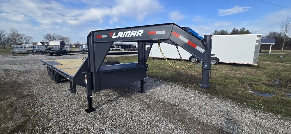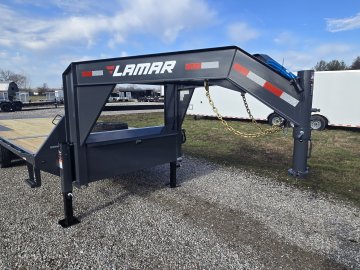 The Lamar FA022637 is a heavy-duty workhorse designed for those who need serious hauling capacity without the hassle of ramps. It’s a 26-foot deckover tilt trailer, which means you get a full 102-inch wide deck that sits above the wheels, giving you plenty of room for wide equipment like tractors, skid steers, or scissor lifts. This specific model is built for heavy loads, boasting a 21,000 lb GVWR riding on triple 7,000 lb axles. Its standout feature is the hydraulic power tilt system—you can raise and lower the entire deck with the push of a button, making loading and unloading incredibly fast and safe. Built on a rugged I-beam frame with a durable charcoal powder coat finish, it typically comes equipped with dual jacks and ample toolbox storage, making it a reliable, efficient choice for commercial contractors.