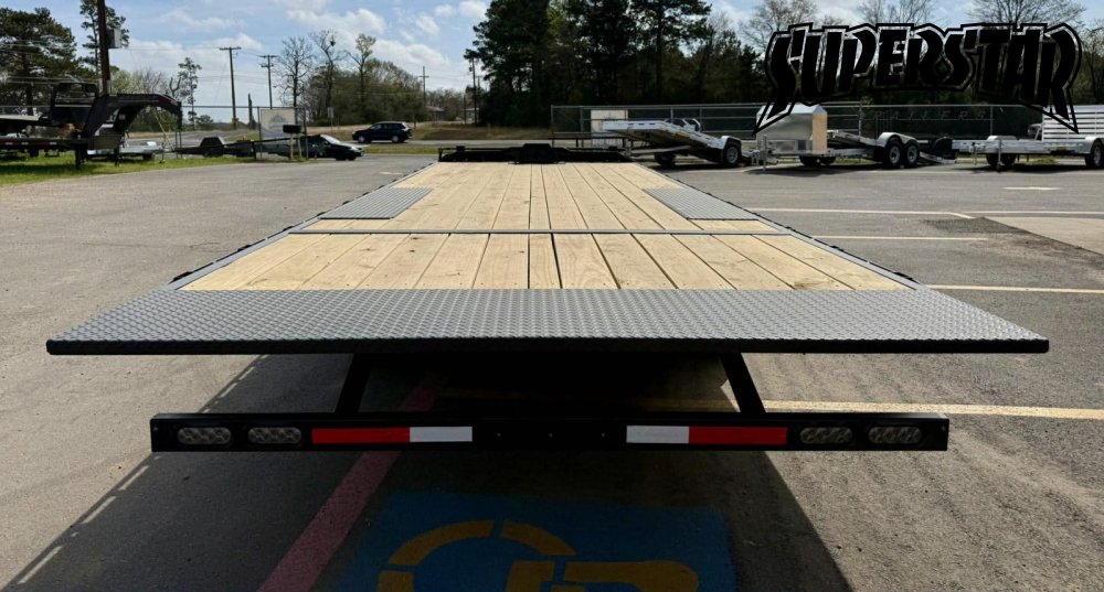 The frame is engineered for strength with a 10″ I-Beam main frame, 3″ channel crossmembers spaced 16″ on center, and a 6″ channel outer deck frame for maximum durability. The full hydraulic tilt deck powered by a KTI pump with wireless remote eliminates the need for ramps, making loading smooth and efficient.