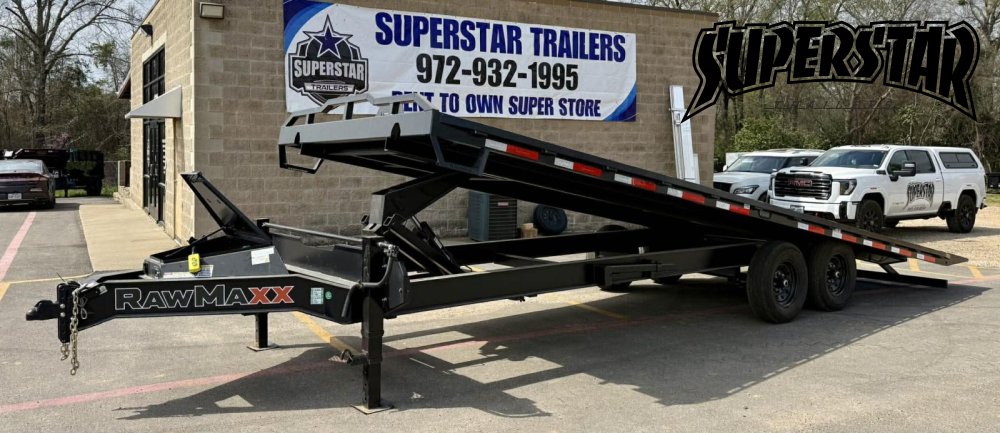 Built for serious equipment hauling, the RawMaxx 26' DTX Deck-Over Tilt Trailer combines heavy-duty steel construction with a full hydraulic tilt system to make loading equipment faster and easier. With a wide 102″ deck, this trailer provides plenty of room for skid steers, tractors, vehicles, and heavy machinery.