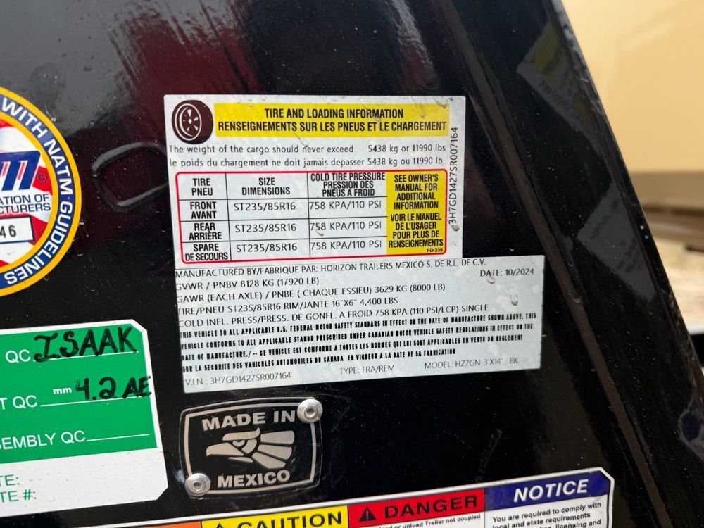 36" sides, 8k axles, 14 ply tires, 12k 2 speed jack