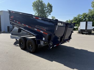 14' LZ7 Dump Trailer 42" Walls - Telescopic Lift - 14K GWVR - Hydraulic Jacks - 3 Way Door - Ramps
