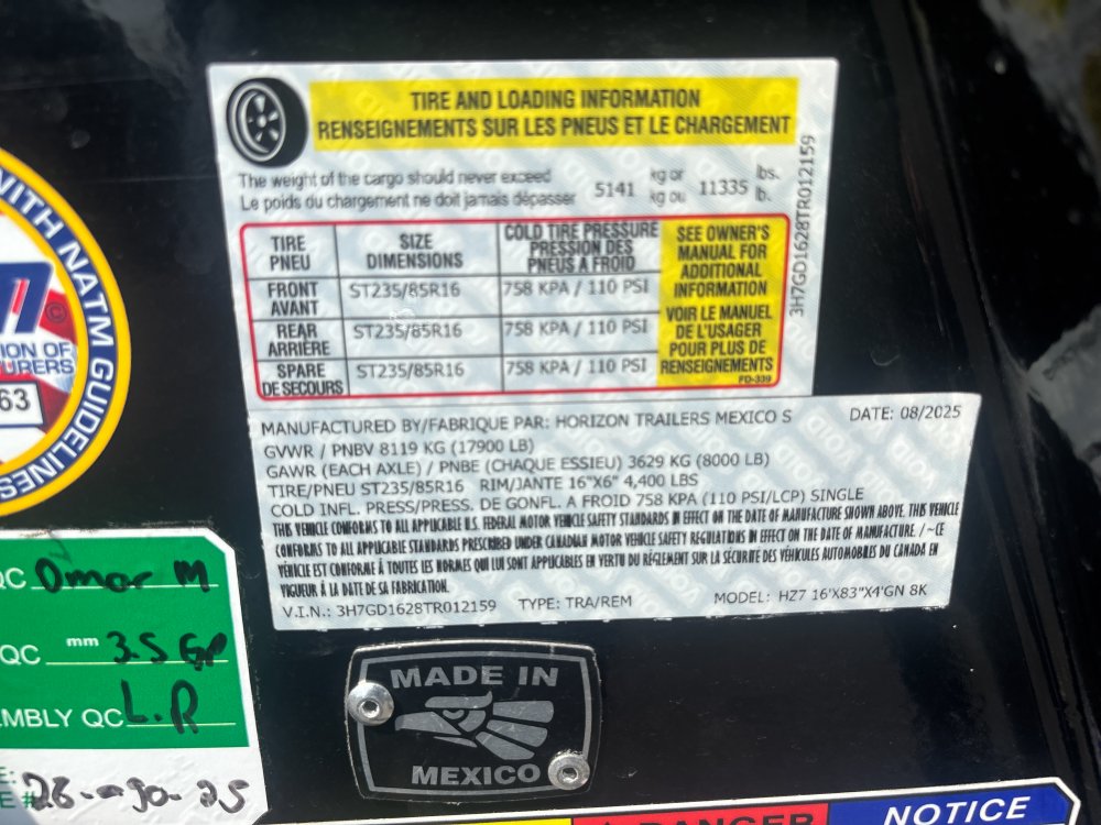 48" sides, 8k axles, 14 ply tires, Stabilizer Stands, Spare Included