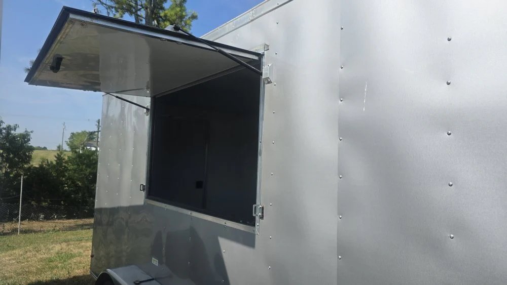 Vendor window, aluminum fenders, rear door, no spare tire, 22 point inspection