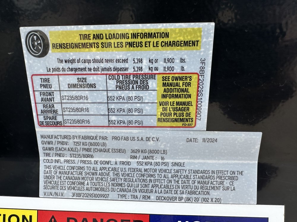 20' DH Bumper Pull Deckover (2) 8K Axles, 14 Ply Tires, Slide In Ramps