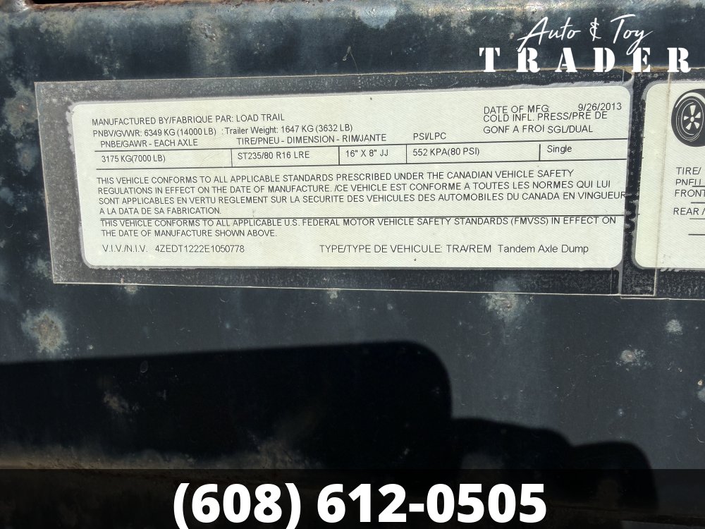 2014 Load Trail 83X12 Dump Trailer