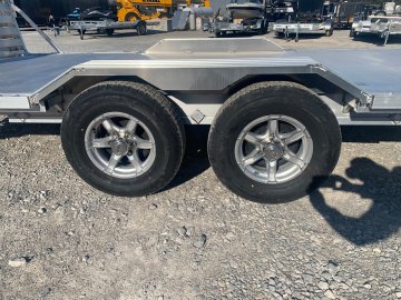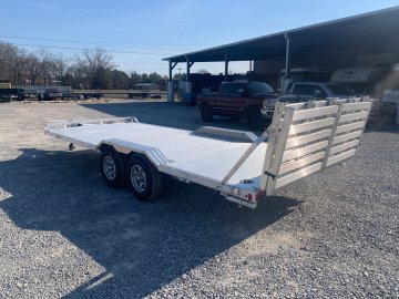 2) 3500# Rubber torsion axles - Easy lube hubs, WB20H-26H - 2) 5200# Rubber torsion axles - Easy lube hubs, Electric brakes, breakaway kit, ST225/75R15 LRE, Aluminum wheels, 6-5.5 BHP, Drive-over aluminum fenders, Extruded aluminum floor, Front retaining rail, A-Framed aluminum tongue, 54" long with 2-5/16" coupler, 2) 7' Aluminum ramps with storage underneath, Rub rail welded to stake pockets on sides, 4) Recessed tie rings, SS #5000, 2) Fold-down rear stabilizer jacks, Swivel tongue jack, 1500# capacity, LED Lighting package, safety chains, 2 Front Load Lights, Overall width = 101.5", Overal length = 302"
