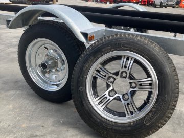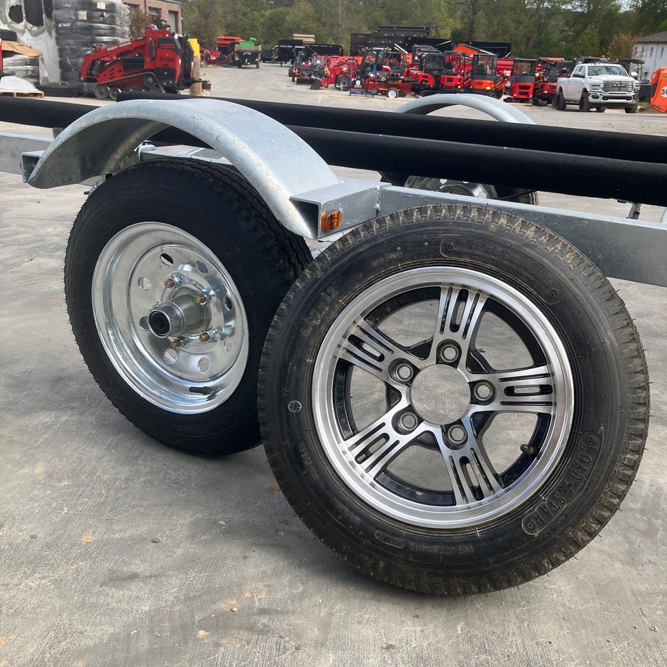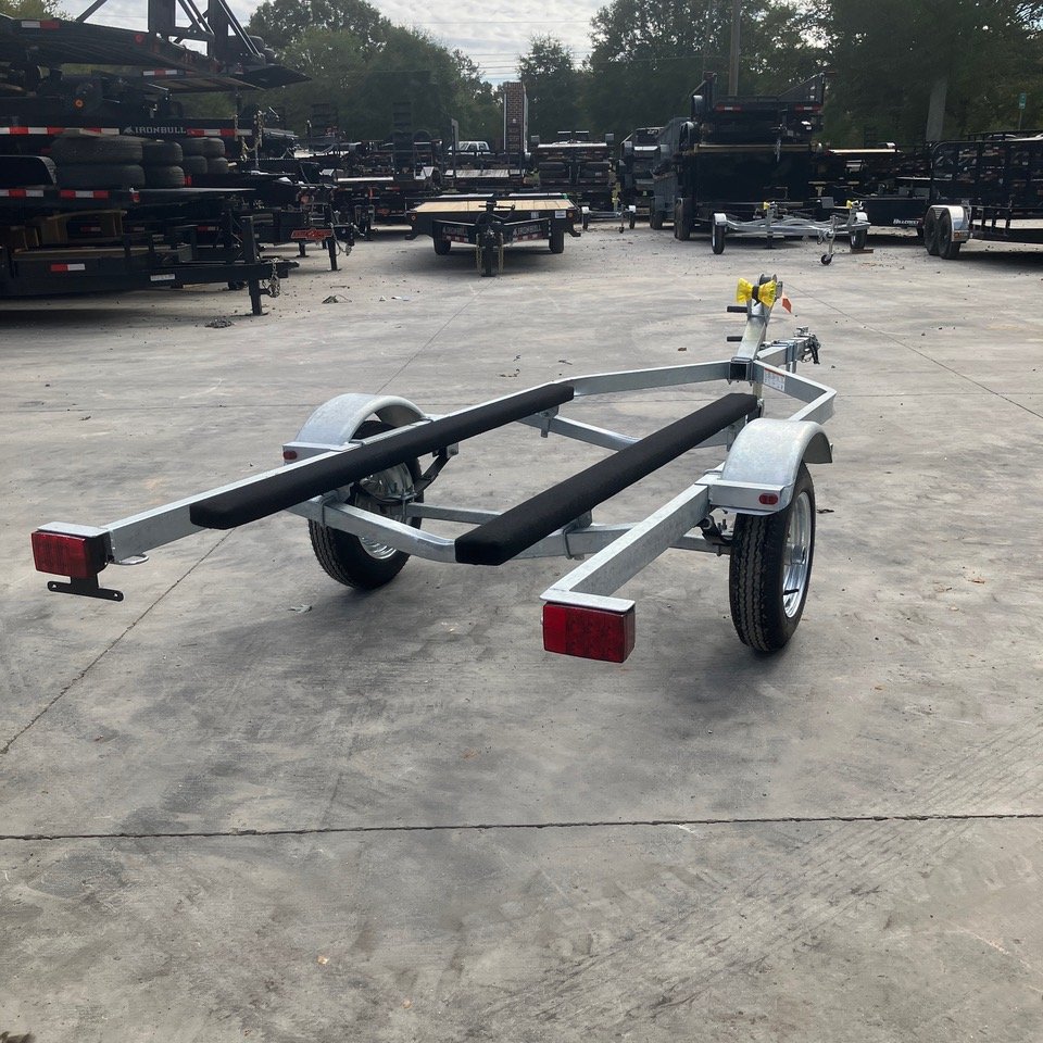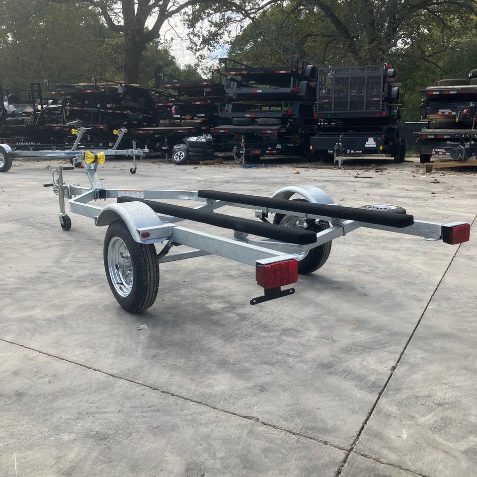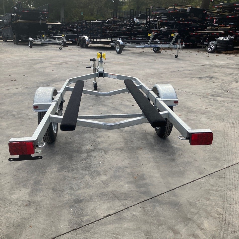 2025 Com-Fab PWT-1100GSJ-STEP Galvanized Extended PWC Jet Ski Trailer suitable for larger heavier PWC, Reinforced climb on step fenders, 2 inch coupler, LED Submersible Lights, 7 foot carpeted bunks, Crank Winch and Ram Swivel Jack, 1500LB axle and 4.80x12 Galvanized Rims with C range tires, can upgrade to Aluminum Rims for $100 or Upgrade to ST145 Radial D Range Tires and Aluminum rims for $150 per trailer. Spare mount $25. Galvanized rim 4.80x12 spare $80. Aluminum rim 4.80x12 spare $110 Aluminum Rim ST145 Radial D range spare $150
