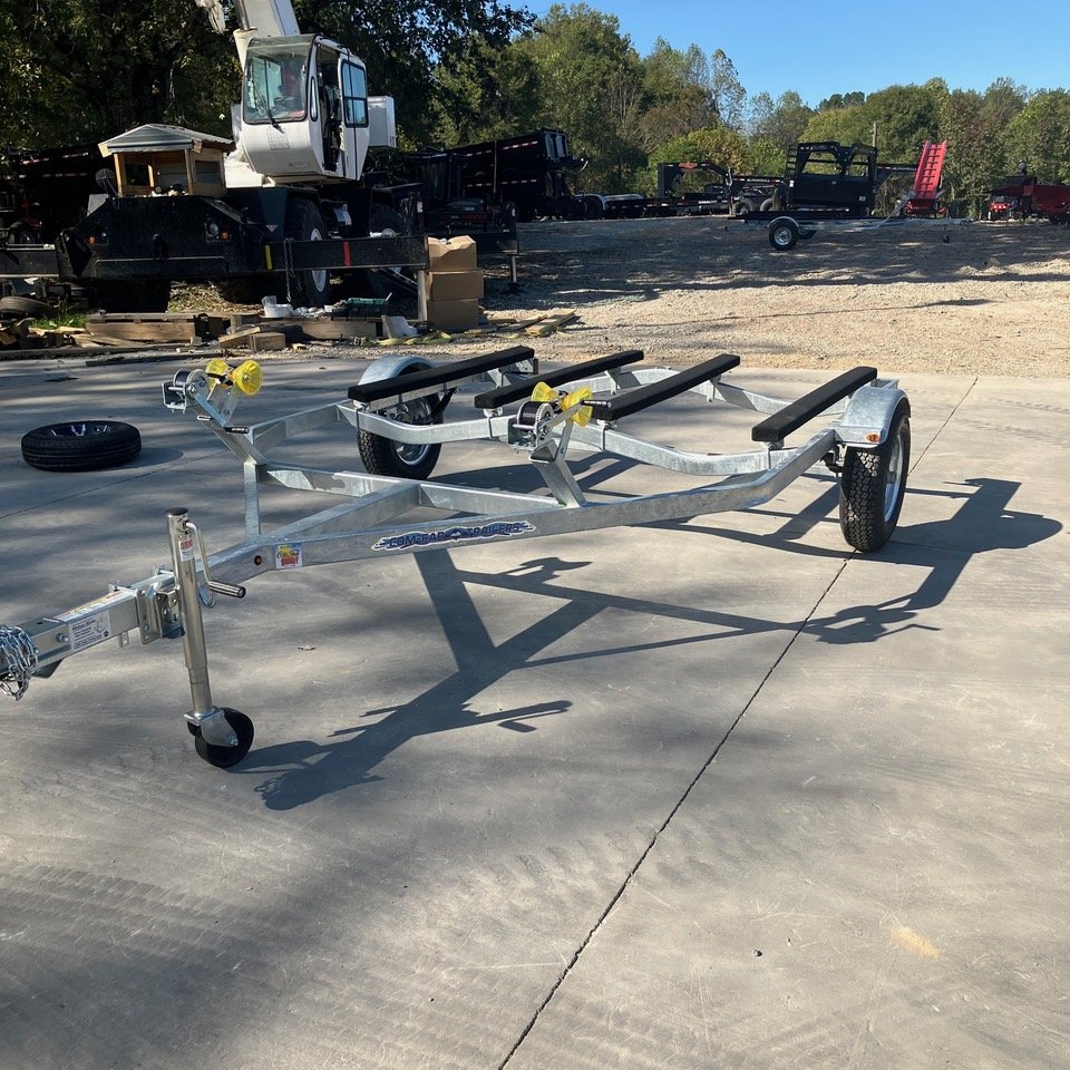 2025 Com-Fab PWT-2212G Galvanized PWC Double Jet Ski Trailer, 2 inch coupler, LED Submersible Lights, 5 foot carpeted bunks, Crank Winches and Ram Swivel Jack, 2000LB axle and 4.80x12 Galvanized Rims with C range tires, can upgrade to Aluminum Rims for $100 or Upgrade to ST145 Radial D Range Tires and Aluminum rims for $150 per trailer. Spare mount $25. Galvanized rim 4.80x12 spare $80. Aluminum rim 4.80x12 spare $110 Aluminum Rim ST145 Radial D range spare $150