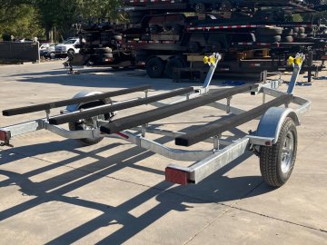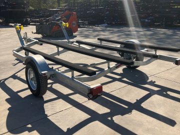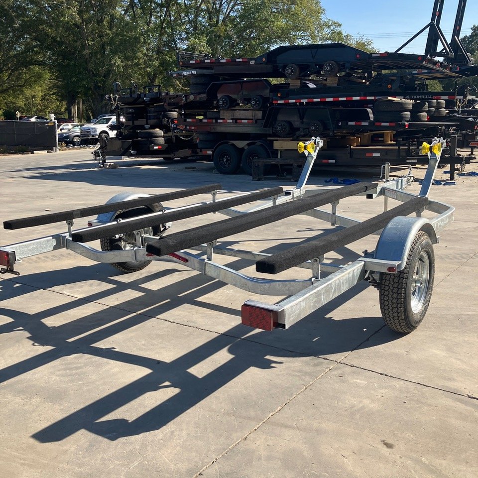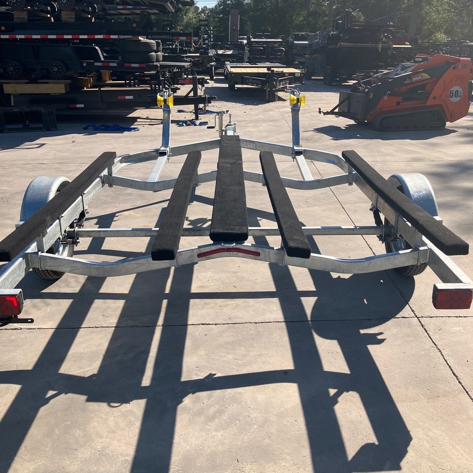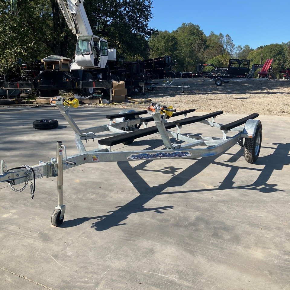 2025 Com-Fab PWT-2214G Galvanized Extended Heavy Duty PWC Double Jet Ski Trailer, 2 inch coupler, LED Submersible Lights, 7 foot carpeted bunks and 10 foot carpeted walkboard, Crank Winches and Ram Swivel Jack, Suitable for even the largest PWC, 2500LB axle and ST175/80/13 Galvanized Rims, can upgrade to Radial D Range Tires and Aluminum rims for $200 per trailer. Spare mount $25. Galvanized rim ST175 spare $125. Aluminum Rim ST175 Radial D range spare $200