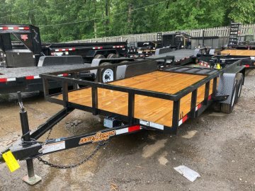 ##### We keep utility trailers in stock from 5x8 single axle up to 7x16 tandem axle. We stock regular rail, 24" mesh sides and these removeable side rail/ramp trailers in most sizes.