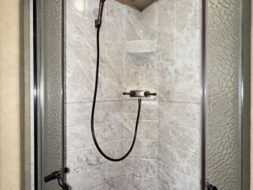 Marbled Radius Shower w/Glass Door and skylight