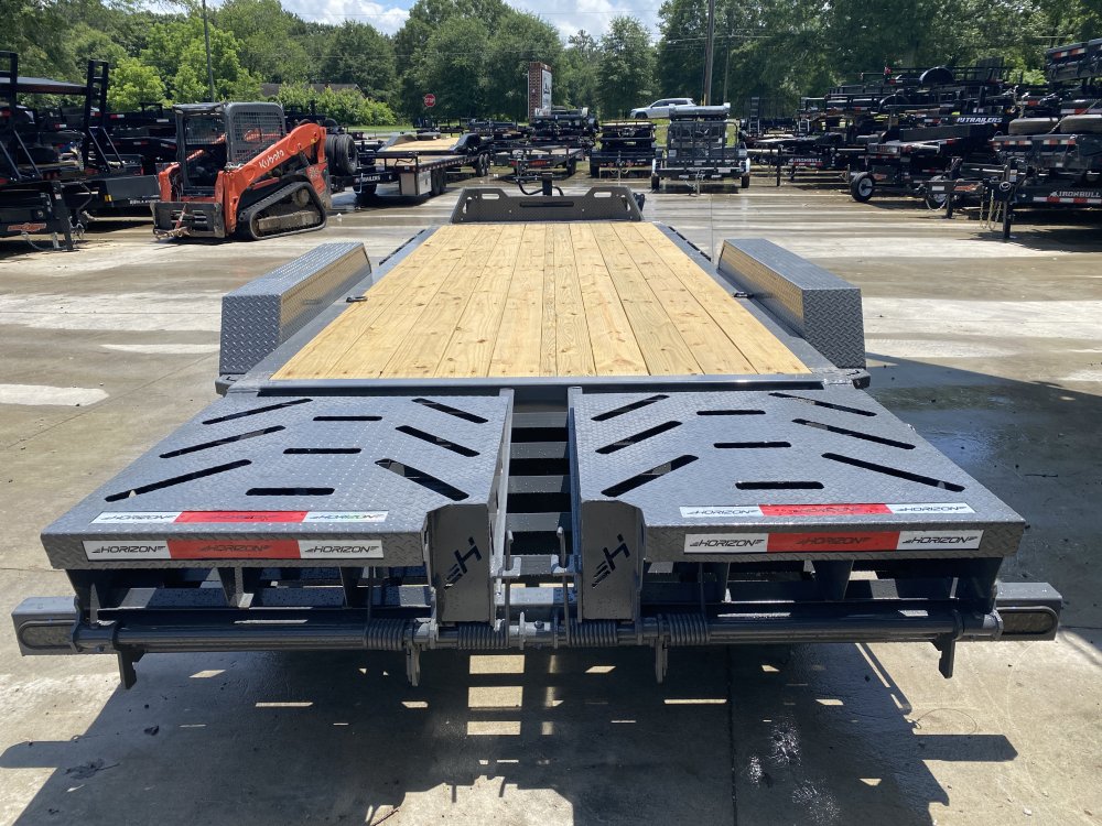 7x20 Horizon 14K I-Beam Equipment Hauler - Rock Guard, 14-Ply Tires, Mountain Ramps (Grey)