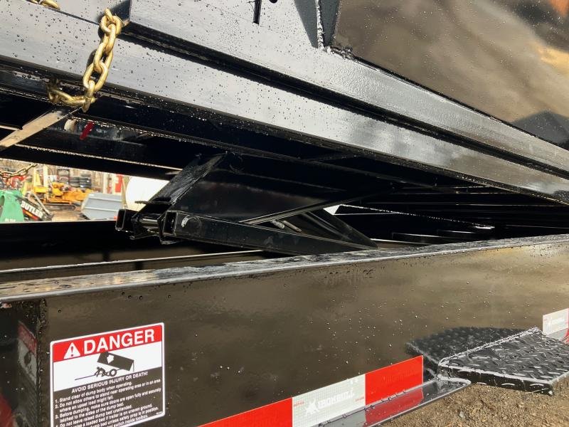 ### **This trailer is loaded features! First it is built to handle 16 foot long 16 yard cannisters at price similar to others 14 foot long 14 yard cannisters. It sits on a 10" I-beam where others use 8". It has Iron Bull's industry leading warranty: Two years complete coverage with roadside assistance, three years structural and axle rating varying by manufacturer. This trailer features axles with a 5 year warranty. Unlike others it houses a dependable Warrior winch with wireless and wired remote inside it's own toolbox. The extra toolbox houses the winch, two batteries and an on board charger/tester. The main toolbox between the dual 10k jacks contains a third battery and the KTI USA hydraulic pump to power the dump scissor hoist. All three batteries will trickle charge from the truck while towing but there is on board battery chargers so all you need is an extension cord to recharge if the batteries are low from frequent dumping.**