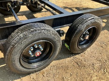 ### This is a beefy trailer with 8k Oil Bath Axles with larger brakes, 16 Ply Tires on solid steel wheels and a thick 7 Gauge Floor