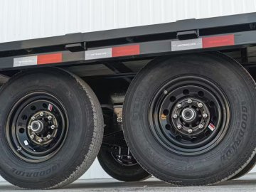 ### 14000 lb. G.V.W.R. with two 7000 lb. axles with 5 year axle warranty. Can be re-rated for DOT purposes if you wish to have a heavy built trailer but want lower G.V.W.R so combination under 26,000 lbs. This only applies to 14k trailers when the GVW of the pulling vehicle is over 12,000.