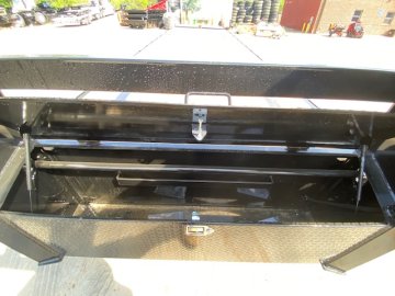 Stake Pockets with bump rail give endless tie down points, a large toolbox sits between the dual 12k jacks, monster steps make climbing up easier and the monster ramps can pin up or fold flat.