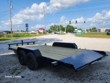 16+2 7K Flatbed w/2-3500lb EZ lube axles,Brakes on front axle, #1 Treated floor ,w/ Tread plate dovetail, LED Lights