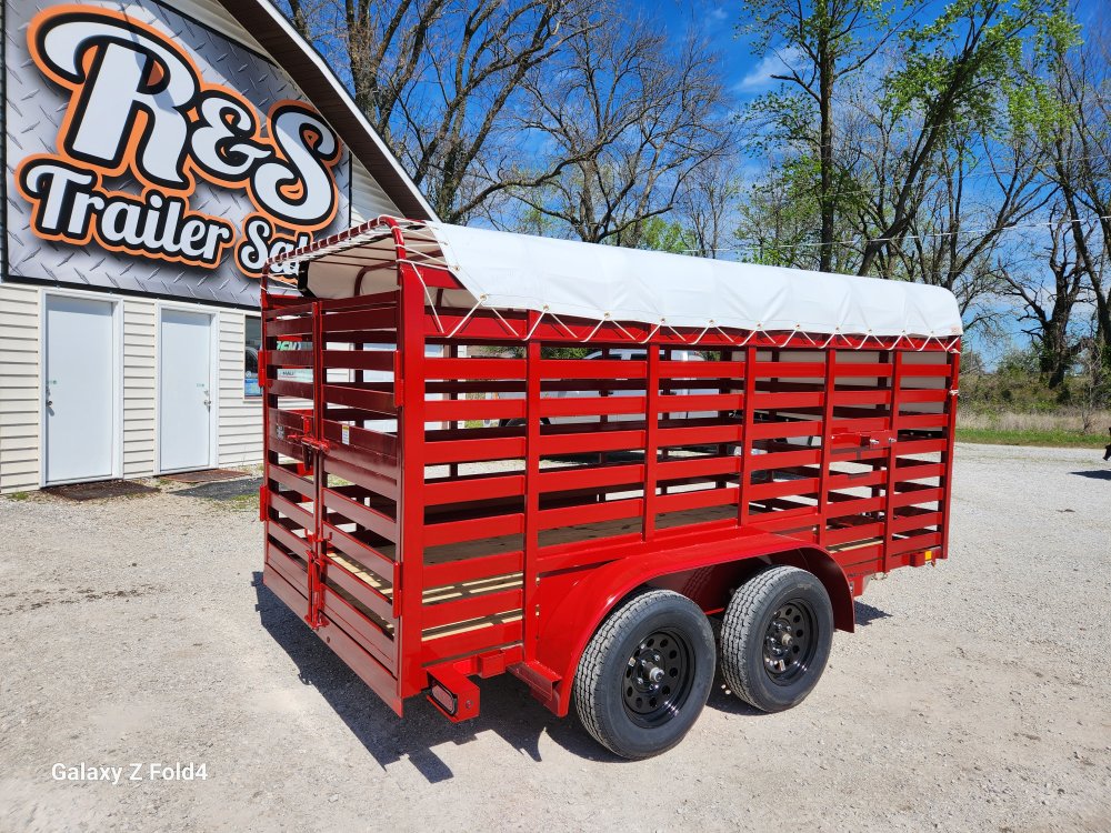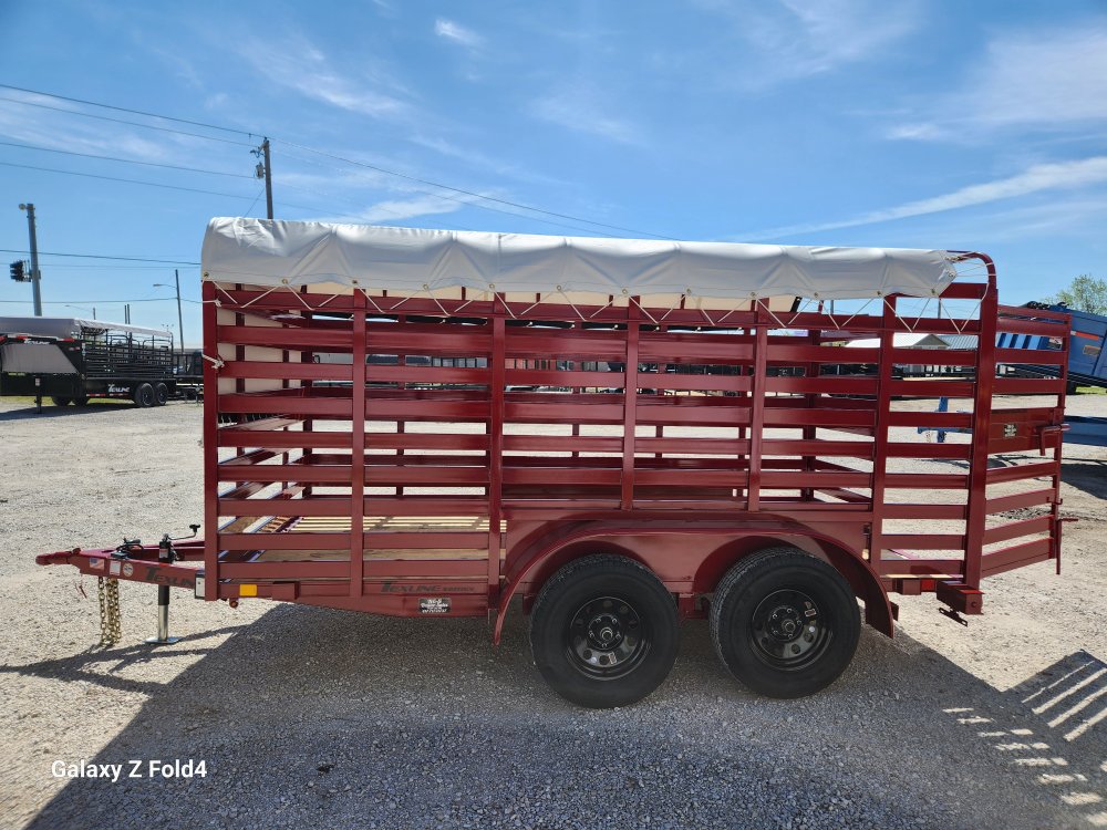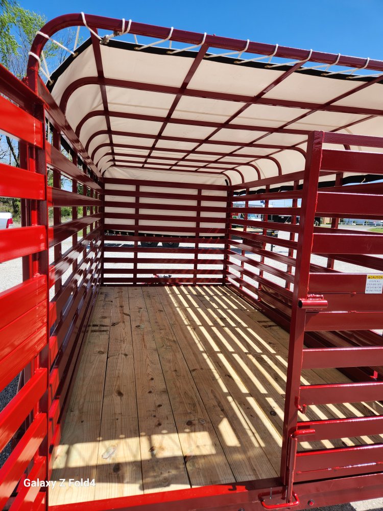 2026 72x12 Tandem Mini Stock Trailer, 2-3500 EZ Lube Axles, Brakes on Front Axle, 5K Swing Jack, Canvas Top (White)