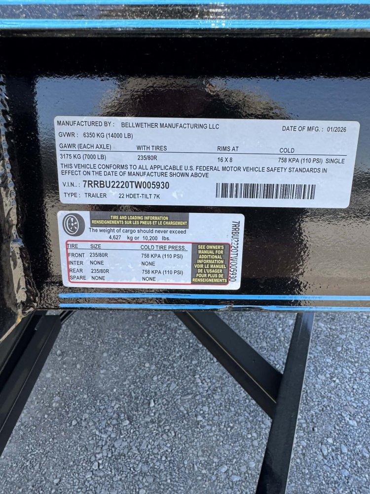 (2) BRK, EBA, 235 TIRES, 2 5/16 ADJ, DP FENDERS & DP FLOOR, SPRK, WT, SP, 7K-8 HOLE, 12K DLJ, TILT, OW, 7 WAY, BLACK