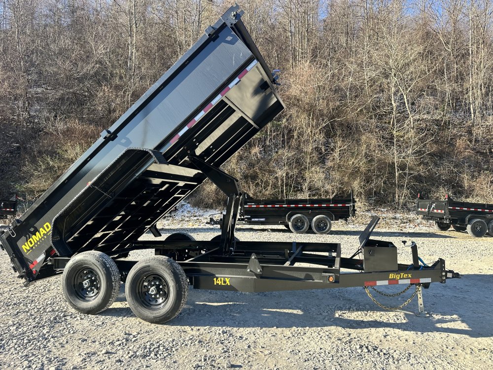 2026 Big Tex 14LX-14 14LX Channel Tandem Axle Dump Trailer Tested Big Tex Tough. Value Guaranteed. The 14LX offers unbeatable value without sacrificing quality. Designed with a robust 6-inch channel frame and tongue, it ensures exceptional strength and durability. Its affordable price point includes essential features such as a hydraulic scissor lift system with power up, power down, and gravity down capabilities, forward self-adjusting brakes, and a heavy-duty adjustable coupler. Perfect for hauling both equipment and loose materials, the 14LX guarantees reliable performance for the toughest jobs. Discover the value-driven 14LX and experience premium quality at an economical price. Info Industry Trailer Make Big Tex Model 14LX-14 Trim Base Year 2026 Msrp 12739 Price 8995 Stock Number 62687 Category Dump Trailer Subcategory Dump Trailer Condition New Location Charleston Vin 16V1D1929T7462687 Color Black Length 14' Specifications GVWR14000 lbsWidth83"Frame6" ChannelFenders9" x 72" 14 Ga. Diamond Plate Double Square BrokeSuspensionMulti-Leaf Spring w/ EqualizerTiresST235/80 R-16 Load Range-E 10 Ply Radial TiresTongueLength: 47-1/2" | 6" ChannelFinishProfessional Finish w/ Primer StandardMax Load10570 lbsCrossmembers3" Channel on 16" CentersDry Weight3430 lbsGate/DoorRear Combo Gate (Barn Doors & Spreader Gate)BrakesForward Self-Adjusting Electric Brakes on All HubsCouplerAdjustable 2-5/16" CouplerTop Rail3"x 2" Rectangular TubingRamps6.5' Slide in Ramps with Integrated Ramp DoorBattery12V Deep CycleLightsRecessed, Grommet-Mounted L.E.D. LightingFloor10 Gauge Smooth SteelSafety Chains3/8" Grade 70 w/ Safety Latch Hook (2 ea)WheelsBlack Mod SteelAxles2 - 7,000# Premium, Cambered Axles with Quick-Lubricating HubsLength14'