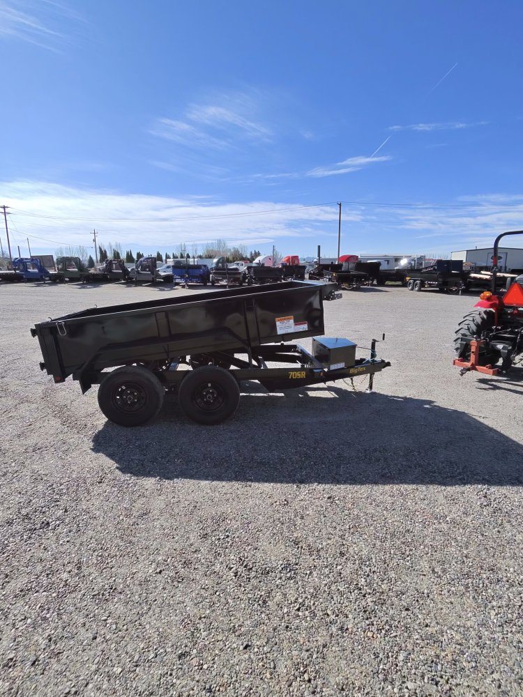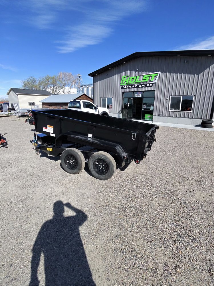 70SR Tandem Axle Single Ram Dump For those who need a light-duty trailer that has more power to tackle unpredictable tasks, the 70SR Tandem Axle Single Ram Dump Trailer is built for you. Haul and dump mulch, dirt, gravel, and other light loads with confidence around the home or farm with this durable and reliable trailer. Equipped with a lockable battery box and straight ram hydraulic lifting system, the 70SR offers a secure and versatile experience that's designed to meet the needs of hardworking homeowners, industrious farmers, and ambitious go-getters-someone just like you. Standard Feature Axles 2 - 3,500# Premium, Cambered Axles with Quick-Lubricating Hubs Brakes Forward Self-Adjusting Electric Brakes Suspension Multi-Leaf Slipper Spring w/ Equalizer Tongue 5" Channel Coupler 2-5/16" Stamped A-Frame Safety Chains 1/4" Grd. 70 w/Safety Latch Hook (2 each) Jack 2,000# Top Wind Frame 5" Channel Cross-Members 2" Channel, 17" Centers Floor 16 Gauge Smooth Steel Fenders 9" x 72" 14 Ga. Roll Formed Stake Pockets Stake Pockets Along Both Sides (Quantity Varies by Length) Trailer Plug 7-Way RV Lights Recessed, Grommet-Mounted L.E.D. Lighting Wiring Sealed, Modular Cold-Weather Wiring Harness Tires ST205/75 R-15 Load Range C Bolt Pattern 5-Lug Wheels Black Mod Steel Paint Type Professional Finish w/ Primer Standard Paint Color Black Tie-Downs Along Sides and Rear for Cargo Control Break-Away Kit Complete System with Breakaway Cable Battery 12V Deep Cycle Charger 5A 110V on Board Battery Charger Gate Double Rear Doors J-Hooks Along sides and rear for Cargo Control Power Power Up/Power Down & Gravity Down Hydraulic Pump Ram Self-Contained Single Cylinder Lift Sides 20" Tall Sides (16-Gauge) Storage Lockable Pump and Battery Box mounted in Front of Bed Tarp Fully-Formed Tarp Shroud with Tarp & Rear Tarp Rod Holders Top Rail 2" x 2" Square Tubing
