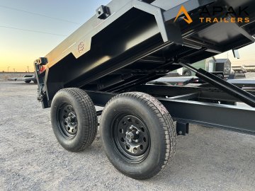 2-3,500lbs axles Adjustable coupler 6" I-beam frame 18" Side walls 10 gauge floor Slide in ramps Tarp system Tool box Barn door & spreader gate Single cylinder lift Spare tire mount + spare tire