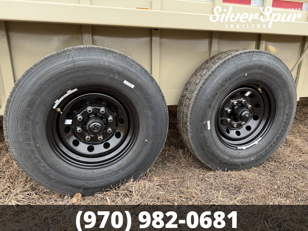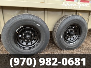 -4 ST235/85R16G Ply Tires on black wheels
