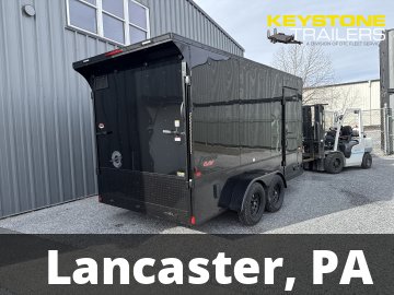 Features: 3 Year Limited Warranty, BLACK OUT PKG, D-Rings/Tie-Downs, Extra 1' Height, Ramp Door, 78" Wide Opening, 24"H Aluminum Tread Plate ALL around, Rear Spoiler w/ Load Lights, Polycore Upgraded Exterior for durability and and clean strong finish.