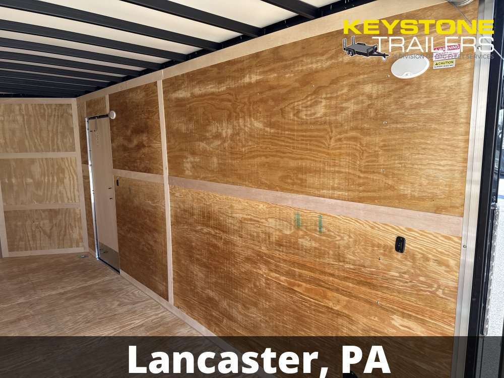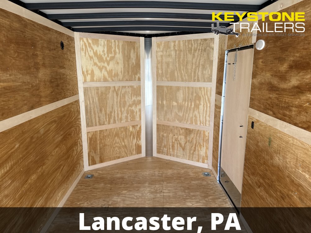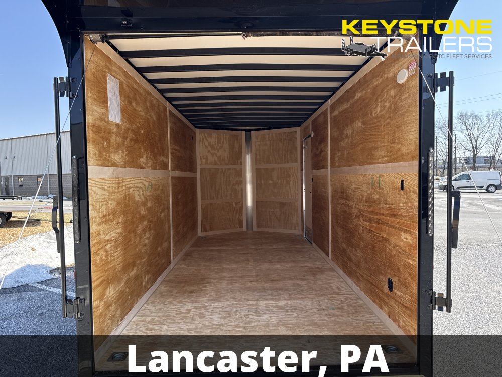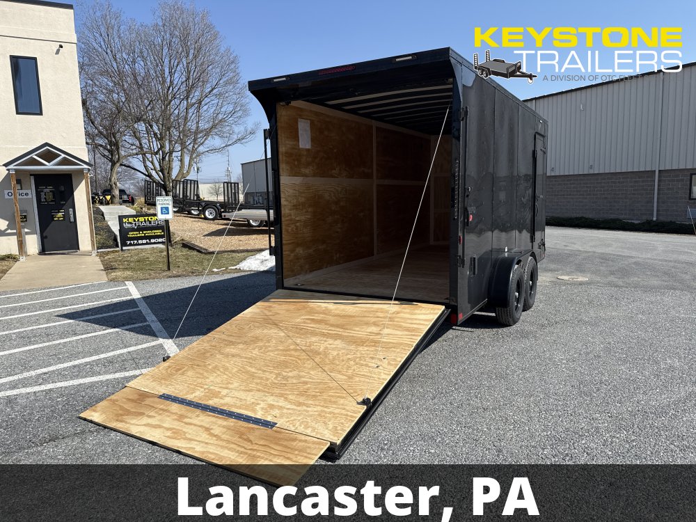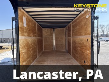 Features: 2-5/16" Adjustable Coupler, 3 Year Limited Warranty, BLACK OUT PKG, D-Rings/Tie-Downs, EZ Lube Hubs, Polycore Exterior, Ramp Door, Rear Spoiler w/ Load Lights, Side Door, Porch Lights/Side Door Loading Lights, Extended 60" A-Frame Tongue, 2 Interior Dome Lights w/ Wall Switch