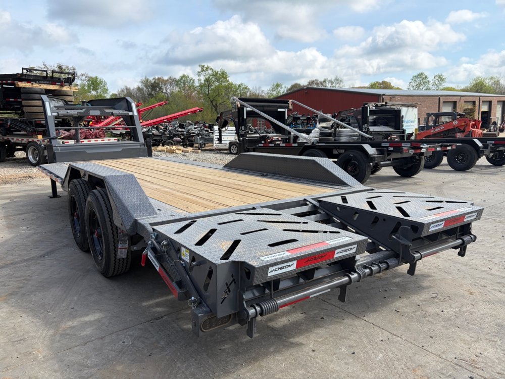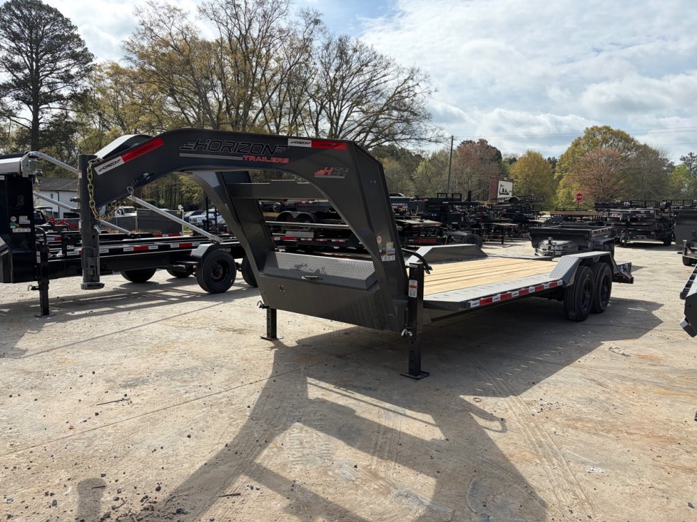 The Horizon 8.5x22 Gooseneck Equipment Hauler is a heavy-duty trailer built for hauling wide and heavy equipment with ease. Featuring 10K axles, 16-ply tires, and super wide 1/4" thick drive-over fenders, this unit is designed for durability, stability, and efficient loading.