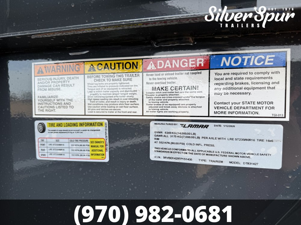 2026 Lamar 83" X 14' 14K Telescopic Gooseneck Dump Trailer