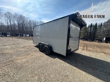 2026 POWERLINE CARGO 7X16 ENCLOSED TRAILER BLACKOUT PACKAGE WITH REAR SPOILER