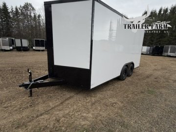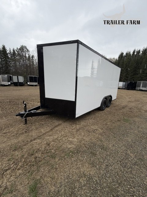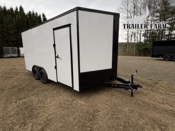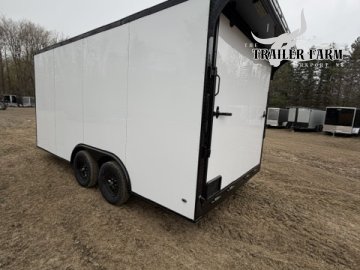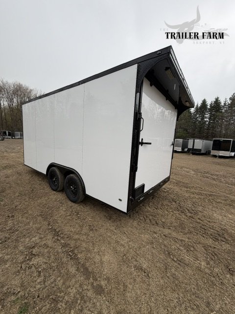 2026 POWERLINE CARGO 8.5X16 ENCLOSED TRAILER EXTRA HEIGHT BLACKOUT PACKAGE REAR SPOILER W/ LED LIGHTS