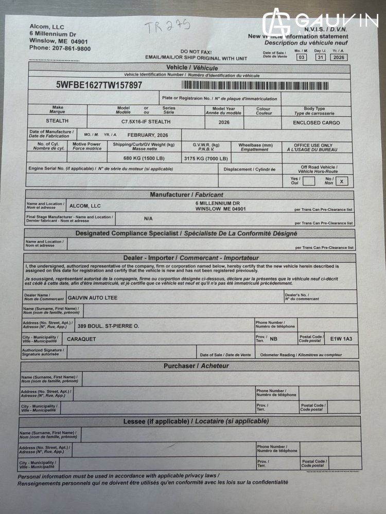 2026 Stealth C7.5X16-IF Enclosed Cargo Aluminum